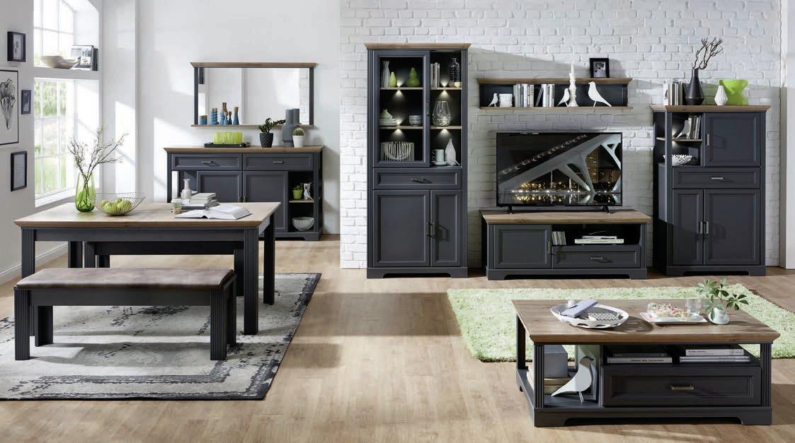 Модулна система Жасмин с вкл. Led осветление, предлага богата гама от различни елементи в класически стил. Можете да обзаведете както Вашата дневна и трапезария, така и антрето Ви. Имате избор от 24 модула с включени екстри, като механизми за плавно затваряне на врати и чекмеджета, Led осветление, метални дръжки в стил антик, синхронен механизъм за разтягане на трапезната маса. Корпусът и лицевите елементи са в декор Графит, а плотовете в декор Дъб Артизан, MDF. /по поръчка/