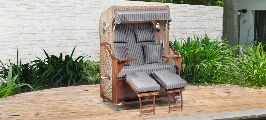 Strandkorb Atlantik Robuste und weiche Bezüge, Mahagoniholz, Maße (B x H x T) ca.: 125 x 170 x 80 cm