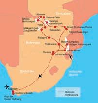 31. Tag Krüger Region – Pretoria (ca. 450 km) 32. Tag Pretoria – Johannesburg (ca. 150 km), Rückflug/Deutschland 33. Tag Ankunft/Deutschland. Änderungen vorbehalten.