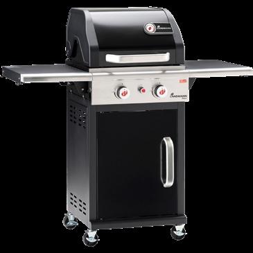 2 stufenlos einstellbare Brenner, PTS, emaillierte Gusseisenroste, abklappbare Seitentische Gasflasche nicht im Lieferumfang enthalten.