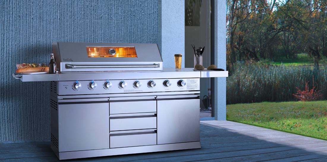 Outdoorküche Bristol Edelstahl, 6 stufenlos regulierbare Hauptbrenner (je 3,9 kW), Maße (B x H x T) ca.: 214 x 119 x 60 cm