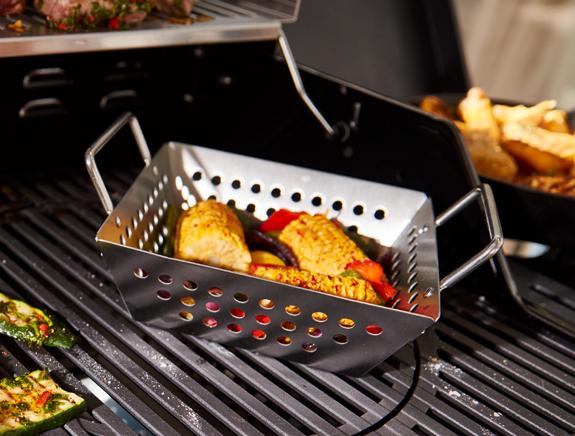 Mehr Möglichkeiten mit passendem Grillzubehör: Das perfekte Grill-Ergebnis hängt nicht nur von Grillgut und Glut ab. Probiert z. B. Grillkörbe oder Schalen für leckere Aufläufe, Grillgemüse oder Meeresfrüchte.
