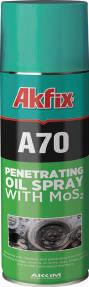 • Спрей А70 против ръжда AKFIX е висококачествен препарат и смазочно масло, премахващо ръжда. • Спреят е с отлична проникваща способност, с него получавате незабавни резултати, благодарение на съдържанието на MoS₂. • Спрея се използва за премахване на ръжда, почиства и предпазва от корозия, намалява триенето, разхлабва болтове, гайки, панти, катинари и подобни механични елементи. код № 78934