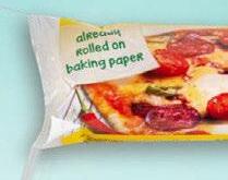 BILLA от опаковката и го разстелете заедно с хартията директно върху тава за печене. Оформете малко по-плътен борд в краищата на тавата.