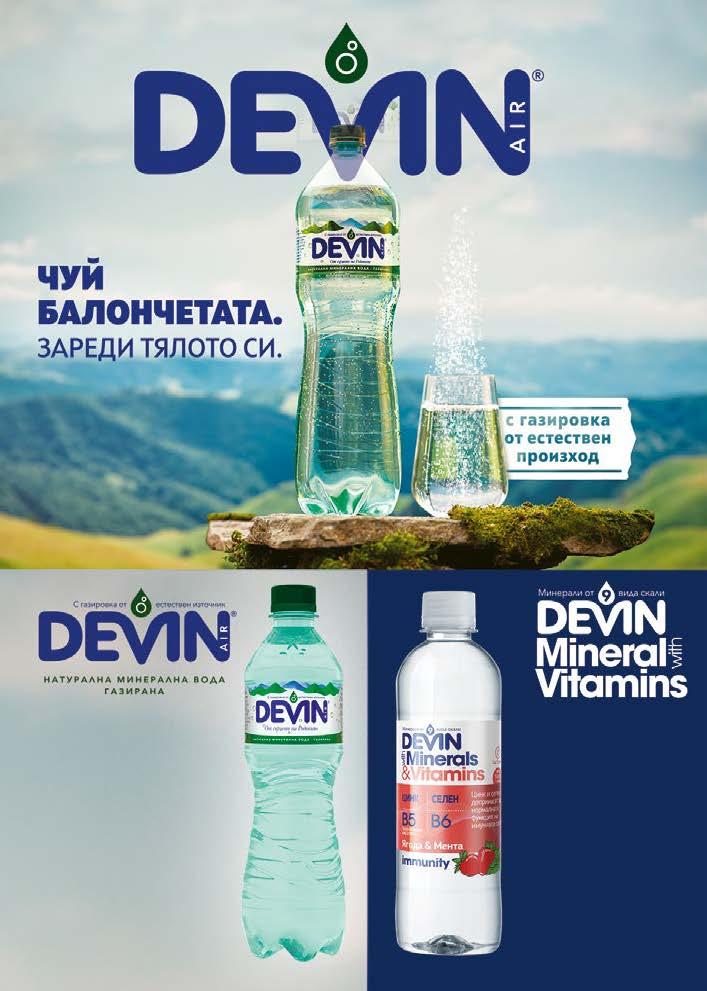 НА ВСИЧКИ ВИНA С МАРКА BURGOZONE -15% -18% 145 179 Овкусена вода Минерали и Витамини Devin 0,425 л -33% 199 299 Негазирана напитка Prisun 1,5 л Посочените цени са в български лева с включен ДДС. Посочените цени са в български лева с включен ДДС. Газирана минерална вода Devin Air 1,5 л -15% 109 129 085 099 Газирана минерална вода Devin Air 0,5 л