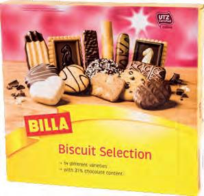 В BILLA 259 4 09 -36% Чипс Ruffles 155 г 599 Мюсли Granola Bonavita 500 г цена без BILLA Card 8,29 399 Сладко 60% плод Джем и Джем 240 г Различни видове цена без BILLA Card 5,19 3499 4899 -28% Кафе на зърна 100% Arabica Costa 1 кг 089119 -25% Солети Златна Добруджа 150 г 089109 -18% Печени слънчогледови семки Detelina Extra 100 г НАШИТЕ МАРКИ 021028 -25% Разтворима напитка 3в1 BILLA 18 г 479619 -22% Печено кашу BILLA 150 г 499629 -20% Бисквитиера селекция BILLA 250 г 199239 -16% Ментови или плодови бонбони BILLA 200 г -36% празнични оферти