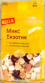 Мляно кафе Jacobs Monarch 250 г -37% 559 889 Разтворимо кафе Tchibo Black & White 200 г -44% 999 1799 -30% 069 Кейк Milkiss 42 г 099 -26% 199 Шоколад Break 85 г 269 099 Шоколадов десерт Lion 2 pack 60 г 229 Сурови бадеми Rois 70 г НАШИТЕ МАРКИ -25% 021 Разтворима напитка 3в1 BILLA 18 г 028 Печени белени фъстъци без сол BILLA 200 г -23% 199 259 Екзотик микс BILLA 150 г -22% 349 449 В BILLA -41% 229 Чипс Chio Intense 130 г 389 Посочените цени са в български лева с включен ДДС. Оризови бисквити Rice up 120 г -29% 119 169