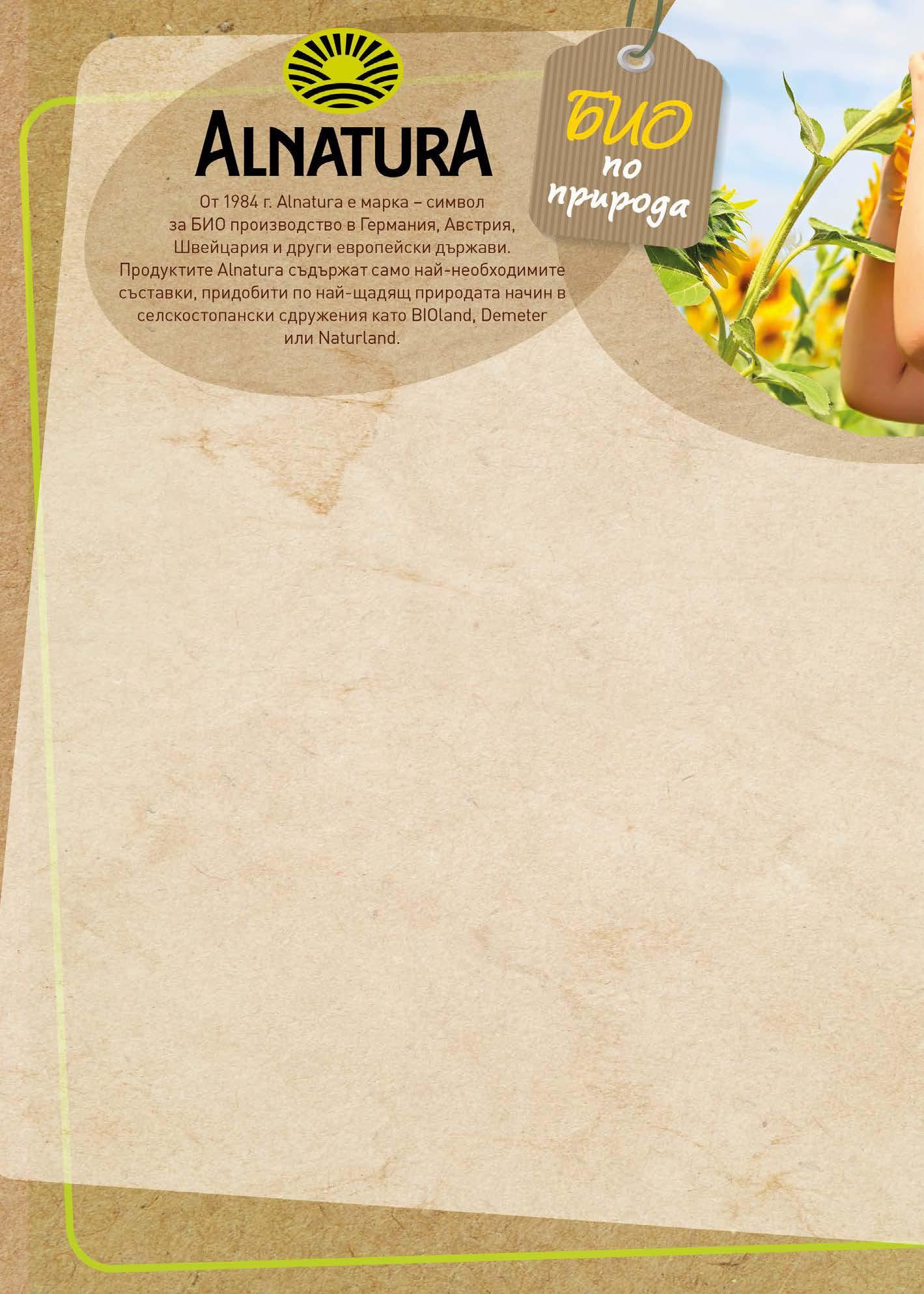 лв.249 -26% AlnaturaбялБиобоб 400 г предишнацена3,39 лв.129 -18%Био плодово барче за малкиAlnaturaдеца 23 г предишна цена 1,59 лв.299 -16% зеленчуководетскоБиопюре 250 г предишнацена3,59 лв.229 -17% зеленчуководетскоБиопюреAlnatura 190 г предишна цена 2,79 лв.239 -17% плодоводетскоБиопюреAlnatura 190 г предишнацена2,89 лв.249 -20% Био ръженAlnaturaхляб 500 г предишна цена 3,15 лв.249 -21% концентратдоматенБиоAlnatura 200 г предишнацена3,19 лв.399 -20% Био сос за БазиликопастаAlnatura 325 мл предишнацена4,99 лв.319 -22% натуралноБиотофуAlnatura 200 г предишнацена4,09