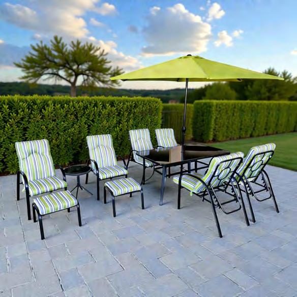 150х90х72см; 6 стола - 88,5х53х71см; 2 табуретки - 34х47,5х49см; странична маса 48х50см; чадър диаметър 270см; метал и полиестер ref. 1057572 1075,69 лв. 549,99 €