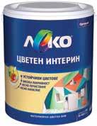 2 ДЕКОРАЦИЯ ЦВЕТНА ИНТЕРИОРНА БОЯ DEKORATOR COLOR WEEKEND САТЕН TEFLON® 2,5Л за интериорна употреба, гладко покритие със сатенен гланц, което не задържа прах, лесна за нанасяне, максимална устойчивост на триене и миене, покривност 25м2 за една опаковка, за пълно покритие в зависимост от цвета, различни цветове ref. 994181 29 лв. 99 57 лв. 99 *цена за брой *цена за брой 12 лв. ЛАТЕКСНА49 БОЯ OPTIVA 5 0,45Л за интериорна употреба, акрилно-композитна боя на водна основа, най-висок клас устойчи вост на миене/мокро почистване, покривност 16м2/л, мат, цвят бял ref. 1015173 • 0,9л ref. 1015174 18,99 лв. • 2,7л ref. 1015175 59,99 лв. • 9л ref. 1015176 169,99 лв. ИНТЕРИОРНА БОЯ SPIRIT LATEX IMPECCABLE WHITE 1Л 1л, за интериорна употреба, подходя ща за стени и тавани в помещения, изложени на чести замърсявания, лесна за поддържане и почистване, покривност 9-12м² за една опаковка, цвят бял ref. 961446 • 2,5л ref. 961447 31,99 лв. • 5л ref. 961448 54,99 лв. СУПЕРФИНА ШПАКЛОВКА VISTO SMOOTH 5КГ готова за употреба, пастообразна с дребнозърнеста структура, време за повърхностно изсъхване 2-3ч, разход 1кг/м², цвят бял ref. 999696 • 18кг ref. 999697 26,49 лв. 13 лв. 99 10 лв. 49 ЛАМПЕРИИ: *цена на квадратен метър *цена на квадратен метър*цена на квадратен метър *цена на квадратен метър ЛАМПЕРИЯ PVC дебелина 8мм, размер на ламелата 2,65х0,25м, продажба на пакет - 1 пакет (4 ламели) =2,65м2, декор андалусия гранада ref. 1006824 ЛАМПЕРИЯ PVC дебелина 8мм, размер на ламелата 2,65х0,25см, продажба на пакет - 1 пакет (4 ламели) =2,65м2, декор Daisy ref. 1016765 ЛАМПЕРИЯ PVC дебелина 8мм, размер на ламелата 2,6х0,25м, продажба на пакет - 1 пакет (4 ламели) =2,6м2, декор генова сив ref. 1016893 ЛАМПЕРИЯ HD STONE PVC, дебелина 10мм, размер на ламелата 2,60x0,25м, продажба на пакет - 1 пакет (4 ламели) = 2,6м2, декор камък ref. 964081 18 лв. 99 19 лв. 9917 лв. 99 29 лв. 99 » водоустойчива » водоустойчива » водоустойчива » водоустойчива 22 лв. 99 14 лв. 99 23 лв. 99 ЛАТЕКСНА БОЯ OPTIVA COLOUR 0,9Л за интериорна употреба, за боядисване на гип сокартон, гипс, циментови и варови мазилки, декоративно боядисване на бетонни основи, за обновяване на стари покрития, покривност 16м2/л, мат, цвят бял ref. 1015164 • 2,7л ref. 1015165 30,99 лв. • 9л ref. 1015166 89,99 лв. АКРИЛНА ФАСАДНА БОЯ ЗА ТОНИРАНЕ VISTA 3Л за екстериорна употреба, устойчива на атмос ферни влияния, нанася се лесно, разнася се отлично, образува гладка матова повърхност, покривност 30-36м2, цвят бял ref. 997669 • 9л ref. 997670 63,99 лв. • 15л ref. 997668 99,99 лв. ИНТЕРИОРНА БОЯ ЛЕКО СЪС СРЕБЪРНИ ЙОНИ 2,5Л за интериорна употреба, подходяща за влажни помещения и стаи с интензивен трафик, мощно противобактериално и противогъбично действие, покривност 30-35м2 за една опаковка, цвят бял ref. 893298 • 4л ref. 893299 34,99 лв. • 8,5л ref. 893300 66,99 лв. • 15л ref. 893301 109,99 лв. ИНТЕРИОРНА БОЯ ЗА ТОНИРАНЕ DULUX 2,5Л за интериорна употреба, добра разливност, позволява на стените да дишат, не задържа влага, не поема миризми, лесно се почиства, висока покривност, лесно нанасяне, покривност 30м2 за един слой, мат/сатен ref. 954715 • 5л ref. 954717 109,99 лв. » Безплатно тониране в светли цветове » Безплатно тониране в светли цветове » Безплатно тониране в 804 цвята по каталог Tikkurila Simphony Opus 1 и 2 14 лв. 9927 лв. 99 ГРУНДДЪЛБОКОПРОНИКВАЩSUPRABILIT1Л за интериорна употреба, за обработка на абсорбиращи вътрешни повърхности преди боядисване, за боядисване на гипсокартон, замазка, гипсови мазилки, циментоварови мазилки, бетонни повърхности, покривност 18м²/л, безцветен ref. 1015218 • 5л ref. 1015219 36,99 лв. АНТИРЕФЛЕКСЕН ЛАТЕКС ЗА ТАВАН SIRO HIMMEÄ 0,9Л за интериорна употреба, покрива несъ вършенствата на тавана, създава 