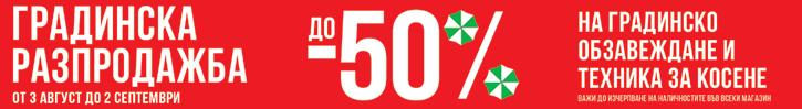 неделя - от 8.30 до 20.00 ч. Плевен - всеки ден от 8.00 до 20.00 ч. София Ринг Мол - всеки ден от 10.00 до 22.00 ч. * Продуктът не е наличен в отделни магазини. Доставя се по поръчка в магазина за 3 дни. Провери за наличност в магазина или на www.mr-bricolage.bg 89 лв. 99 22 лв. 99 62 лв. 99 11 лв. 50 ВИСЯЩА ЛЮЛКА DELOS кош 89х63х111см, стойка диаметър 94см, височина 194см, стоманена основа, кош от изкуствен ратан, възглавници за 319 лв. 99 974 лв. 35 175 лв.