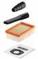 контейнер 25л, кабел 5м, 2,2м смукателен маркуч, превключваема подова дюза, плосък нагънат филтър, филтърна торбичка от полар ref. 1022349