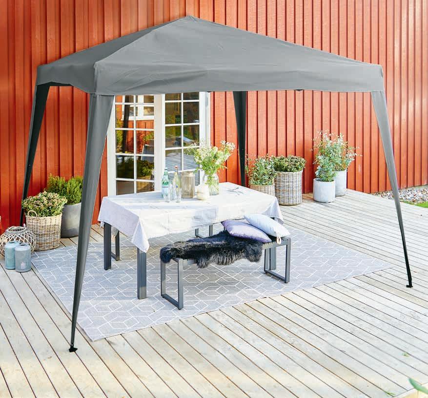 AGGER ЧАДЪР Водоустойчиво полиестерно платнище с UV-защита и алуминиева тръба. С функция за наклон, манивела и вентилация. Ø300 x В246 см 179 лв Спестете 50% 85лв JERUP ШАТРА Стоманена рамка с водоустойчиво полиестерно платнище. Воден стълб 700 мм. Тегло 12 кг. Сгъваема рамка за лесно сглобяване. Странични панели се продават отделно. Ш2,7 x Д2,7 x В2,6 м. 269 лв Спестете 38% 165лв BUKSEBIE