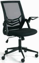 Stoff und Mesh. Fuß aus Stahl. Mit Lendenstütze, klappbarer Armlehne, verstellbarer Sitzhöhe und stufenlosem Kippmechanismus. B59 x H95-106 x T61 cm 119,-