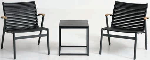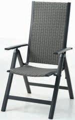 Tisch: Aluminium und künstliches Holz. B80 x L140 x H74 cm 150,Stuhl: Stahl und Textilene. Stapelbar. 25,-