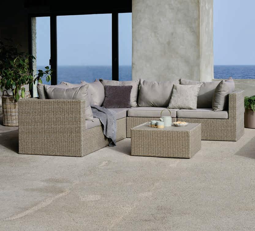 und Polyrattan. Inklusive Premium-Polster mit strapazierfähigem, strukturgewebtem Polyesterbezug.