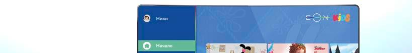 ТЪМЕН ИЛИ СВЕТЪЛ ФОН Сега можеш да гледаш EON TV с тъмен или светъл фон на всички устройства. Направи го по свой вкус. За всеки профил фонът може да е различен. EON ЗА ДЕЦА Детски телевизионни канали и съдържание от EON Видеотека. Забавно и защитено пространство за всяко дете. ДО 7 ДНИ НАЗАД С EON TV можеш да гледаш телевизионно съдържание до 7 дни назад за 200+ TV канала. EON НасладиВИДЕОТЕКАсенаповече от 15 000 филма и телевизионни сериали, а цялата необходима информация е събрана на едно място. ИзползвайТЪРСЕНЕтърсенето, за да намериш лесно своите любими сериали, филми, радио и телевизионни предавания. EON СъздайПРОФИЛEONTVпрофил за себе си и за всеки от семейството. EON TV разбира какво искаш да гледаш и препоръчва съдържание, което тe интересува. Можеш да създадеш до 5 профила. ПЕРСОНАЛИЗИРАНО СЪДЪРЖАНИЕ Гледай съдържание, препоръчано само за теб по телевизията и в EON Видеотека. ТЕЛЕВИЗИЯ НА ЖИВО Гледай най-популярните телевизионни програми с висока разделителна способност. SPORTS MODE Следвай статистиката на мача на живо, както и много друга интересна информация във връзка с конкретно спортно събитие. ТВОЕТО СЪДЪРЖАНИЕ Любимите ти сериали, филми, предавания и напомняния са налични на едно място в раздел „Запазено“.