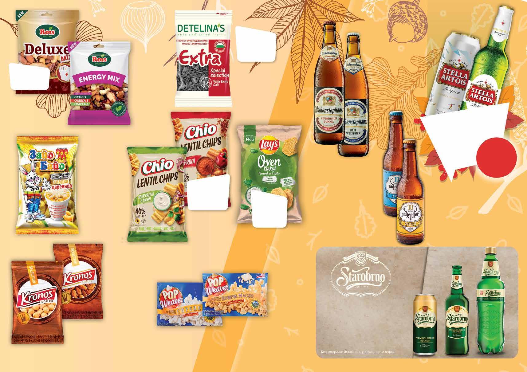3.49 -20% 2 79 лв|бр 2.49 -36% 1 59 лв|бр 3.49 -42% 1 99 лв|бр 5.35 -44% 2 99 лв|бр 3.58 -44% 1 99 лв|бр 6.99 -32% 4 69 лв|бр Deluxe 7.99 -37% 4 99 лв|бр бадем 7.79 -35% 4 99 лв|бр лешник 6.48 -30% 4 49 лв|бр energy 1.99 -30% 1 39 лв|бр 1.69 -29% 1 19 лв|бр 8.89 -43% 4 99 лв|бр кашу 3.39 -20% 2 69 лв|бр 0.79 -17% 0 65 лв|бр Бира WEIHENSTEPHANER мътна светла; тъмна бутилка 500 мл Бира STAROBRNO PET 1.5 л Бира STAROBRNO кен; бутилка* 500 мл *с вкл. амбалаж Пуканки за микровълнова фурна POP WEAVER с повече масло 78 г; със сирене 91 г Царевични пръчици ЗАЙО БАЙО сладка царевица 60 г Чипс от леща CHIO паприка; сметана и лук 65 г Слънчоглед DETELINA‘S Extra черен, печен 200 г Печени ядки KRONOS лешник; бадем; кашу 130 г Печен чипс LAY`S различни вкусове 125 г Печени ядки микс ROIS Deluxe 150 г Сурови ядки микс ROIS Energy 150 г Бира JAGERHOF вайс; светло бутилка, 330 мл отстъпка -30% Всички бири с марка STELLA ARTOIS с *предложението е валидно за магазините със зелени цени 15 ТВ „Фантастико“ си запазва правото на промяна в цените. ТВ „Фантастико” не носи отговорност за допуснати печатни грешки. Количествата са лимитирани! Предложението е валидно до сряда 22.00ч. на 25.10.2023г.