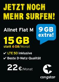 Paketpreis in den ersten 24 Monaten: 9,99 € (inkl. 24 × 5€ Rabatt), danach mtl. Paketpreis 14,99 Euro. Die inkludierte Internet Flat gilt für nationalen Datenverkehr in den Netzen der Telefónica. Bis zu einem Datenvolumen von 6 GB (inkl. LTE) in einem Abrechnungszeitraum steht eine max. erreichbare Geschwindigkeit von 50 Mbit/s im Download und 32 Mbit/s im Upload unter optimalen Bedingungen bereit, danach wird die Geschwindigkeit im jew. Monat auf max. 64 kbit/s (Download)/ 64 kbit/s (Upload) beschränkt. Änderungen und Irrtümer vorbehalten. Alle Preise inkl. gesetzl. MwSt. Anbieter: freenet DLS GmbH, Hollerstraße 126, 24782 Büdelsdorf. e1) Bei Neuabschluss von m1) & a1) erhalten Sie einen Expert-Gutschein im Wert von 100€ in Ihrer Filiale dazu.