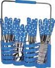 Edelstahl, Kunststoffgriff, je 6 Messer, Gabeln, Löffel und Teelöffel, spülmaschinengeeignet, verschiedene Farben