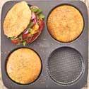 Backform für Burgerbrötchen Karbonstahl, antihaftbeschichtet, für 4 Burger Ø 12 cm (28 x 28 x 3 cm) oder für 12 Mini-Burger Ø 5,5 cm (29 x 22