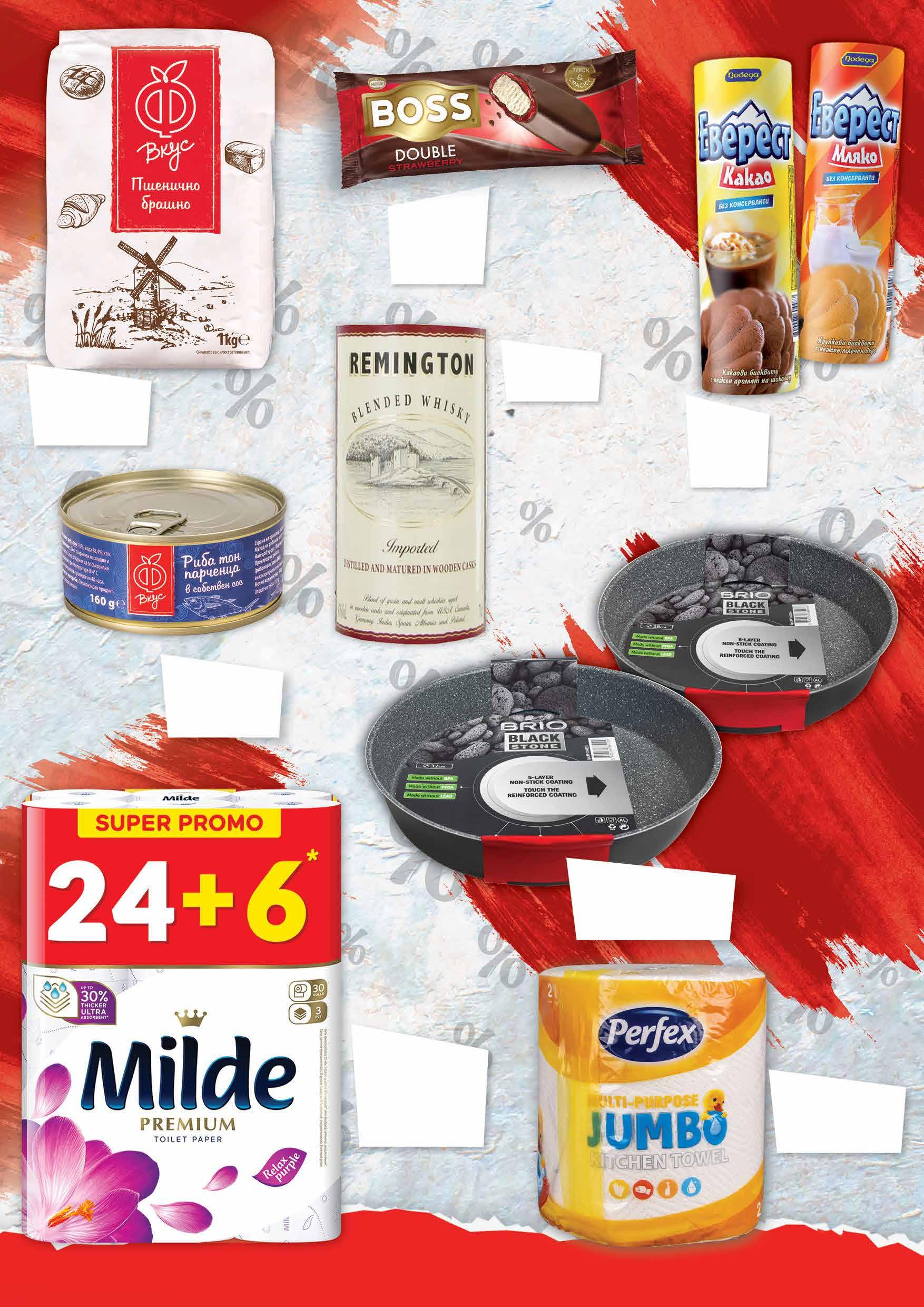 1 65 лв|бр 49 лв|оп. 18 2.69 -40% 1 59 лв|бр 1.19 -25% 0 89 лв|бр 4.69 -47% 2 45 лв|бр 99 лв|бр 23.99 -54% 10 99 лв|бр 32 см 29.99 -50% 14 49 лв|бр 28 см 24.99 -50% 12 2.69 -33% 1 79 лв|бр Уиски REMINGTON 700 мл Бисквити ЕВЕРЕСТ различни видове 215-220 г Кухненско руло PERFEX Jumbo двупластово 1 бр Бяло пшенично брашно Ф ВКУС 1 кг Кръгла тава BRIO Black Stone покритие 28см; 32см Тоалетна хартия MILDE