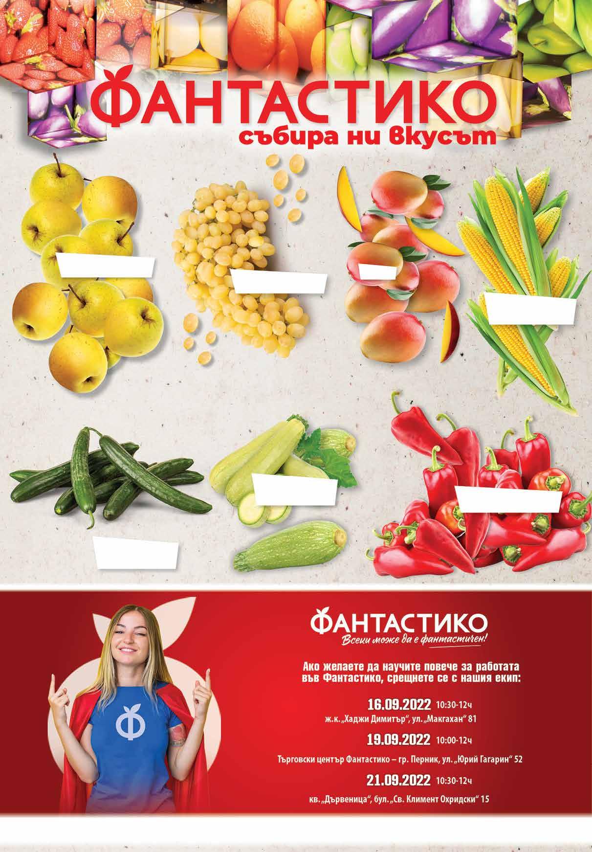 0 лв|бр69 3.99 -35% 2 59 лв|кг 1.79 -27% 1 лв|кг29 2.29 -43% 1 лв|бр29 2.99 -33% 1 99 лв|кг1.99 -20% 1 59 лв|кг 2.99 -26% 2 19 лв|кг Манго Чушки капия червена произход България Царевица 1 брой произход България Тиквички произход България сортКраставициГергана произход България Стафидно грозде произход България Ябълки златни произход България Продуктите, обозначени с този символ, са с БЪЛГАРСКИ произход.Снимките са с илюстративна цел. ТВ „Фантастико” не носи отговорност за допуснати печатни грешки. Количествата са лимитирани! Предложенията са валидни до сряда 22.00 ч на 21.09.2022 г.