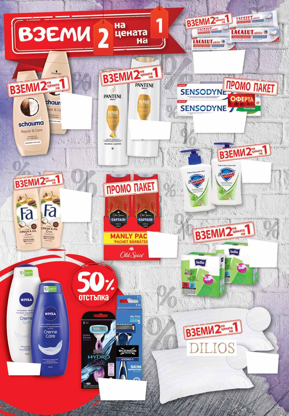 10.76 -50% 5 38 лв|2бр 8 лв|k-t29 38 лв|2бр 20.76 -50% 10 88 лв|2 бр 21.76 -50% 10 9.99 -50% 4 99 лв|бр 9.96 -50% 4 98 лв|2бр 18.99 -58% 7 89 лв|бр 16.49 -58% 6 79 лв|бр 9 99 лв|пакет 10.36 -50% 5 18 лв|2бр 98 лв|2 бр 33.96 -50% 164.36 -50% 2 18 лв|2 оп Шампоан REPAIR&PROTECTPANTENE 2бр* х 360 мл SCHAUMAШампоан 2видоверазличнибр*х250 мл *от един и същи вид Душ гел FA 2видоверазличнибр*х250 мл *от един и същи вид WILKINSONСамобръсначка HYDRO SYLK; HYDRO 5 система OLDдушКомплектгелSPICE 2 бр x 400 мл Течен SAFEGUARDсапун 2Алоебрх 225 мл Душ гел NIVEA различни видове 750 мл Комплект паста за SENSODYNEзъби Extra Whitening + Fluoride 2 бр x 75 мл Паста за зъби LACALUT различни видове 2 бр* х 75 мл *от един и същи вид NEWDILIOSВъзглавницаDAILY 2 бр х 45х65 см BELLAпревръзкиДамскиPANTY 2 оп. х 36 бр в опаковка 6 Продуктите се продават в количества, обичайни за едно домакинство. Декорацията към продуктите не е включена в тяхната цена. ТВ „Фантастико“ си запазва правото на промяна в цените.