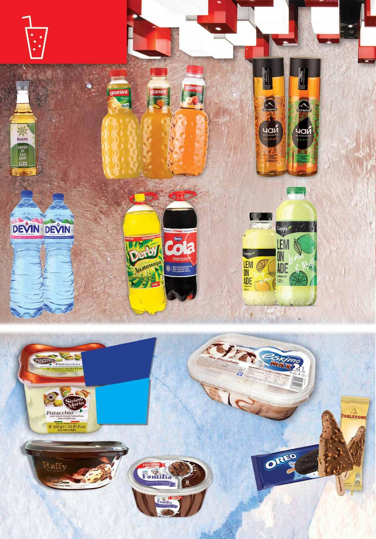 5.19 -36% 3 лв|бр29 8.99 -30 % 6 лв|бр29 9.49 -40% 5 лв|бр69 3.79 -47% 1 99 лв|бр 3.69 -40% 2 19 лв|бр 1.85 -35% 1 19 лв|бр 5.49 -20% 4 39 лв|бр 0.99 -34% 0 лв|бр65 2.49 -20% 1 99 лв|бр1,25л 1.59 -25% 1 19 400лв|брмл 1.99 -30% 1 39 лв|бр сладоледиВсичкисмаркaSIVIEROMARIAс отстъпка -30% Сладолед RAFFY солен карамел с фъстъци; шоколад и ванилия с брауни; сметана и бисквити900мл Студен OLYMPUSчай различни видове PET, 500 мл ЕskimoСладоледMax различни900видовег/2л Сладолед Milka стик 100 мл; Оreo стик 110 мл; Toblerone стик 110 мл различни видове FamiliaNESTLEСладолед 505видоверазличниг напиткаНегазиранаCAPPY PET,различниLemonadeвидове400мл;1,25л BUZZZСироп PET,видоверазлични500мл DERBYнапиткаГазирана 3видоверазличнил Сок / GRANINIНектар 1видоверазличнил ИзворнаМинерална/водаDEVIN 1,5 л 16 Продуктите се продават в количества, обичайни за едно домакинство. Декорацията към продуктите не е включена в тяхната цена. ТВ „Фантастико“ си запазва правото на промяна в цените.