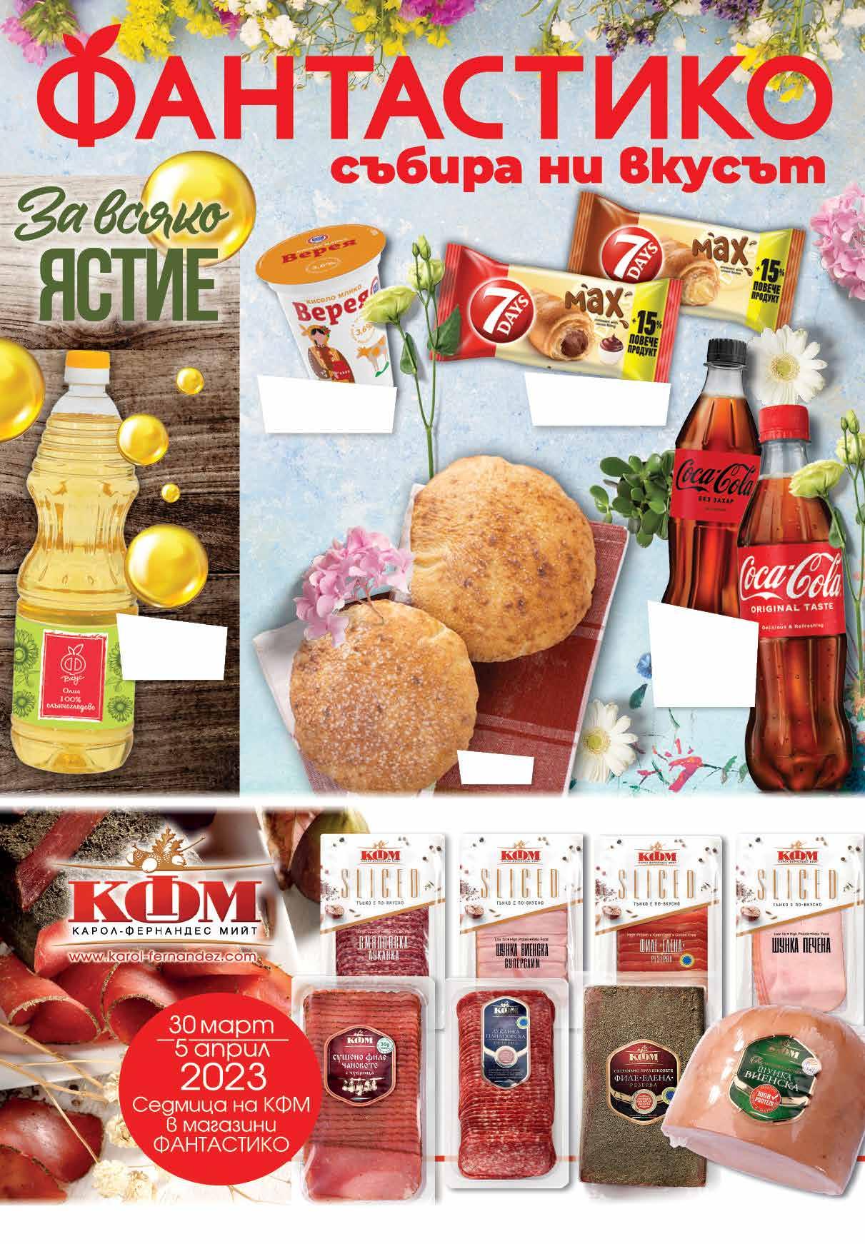 стр.2-3 3.99 -25% 2 99 лв|бр 0.99 -30% 0 69 лв|бр 1.69 -29% 1 19 лв|бр 1.79 -22% 1 39 лв|бр 1.79 -24% 1 35 лв|бр Пърленка 160 г Кроасан 7DAYS Max различни видове 92 г Газирана безалкохолна напитка COCA-COLA; FANTA; SPRITE различни видове 500 мл Кисело мляко ВЕРЕЯ масленост 3,6% по БДС, 400 г Слънчогледово олио Ф ВКУС 1 л www.fantastico.bg fantastico.stores ОФЕРТА ЗА ПЕРИОДА от 30 .03.2023 г. до 22.00 ч . на 05.04.2023 г.