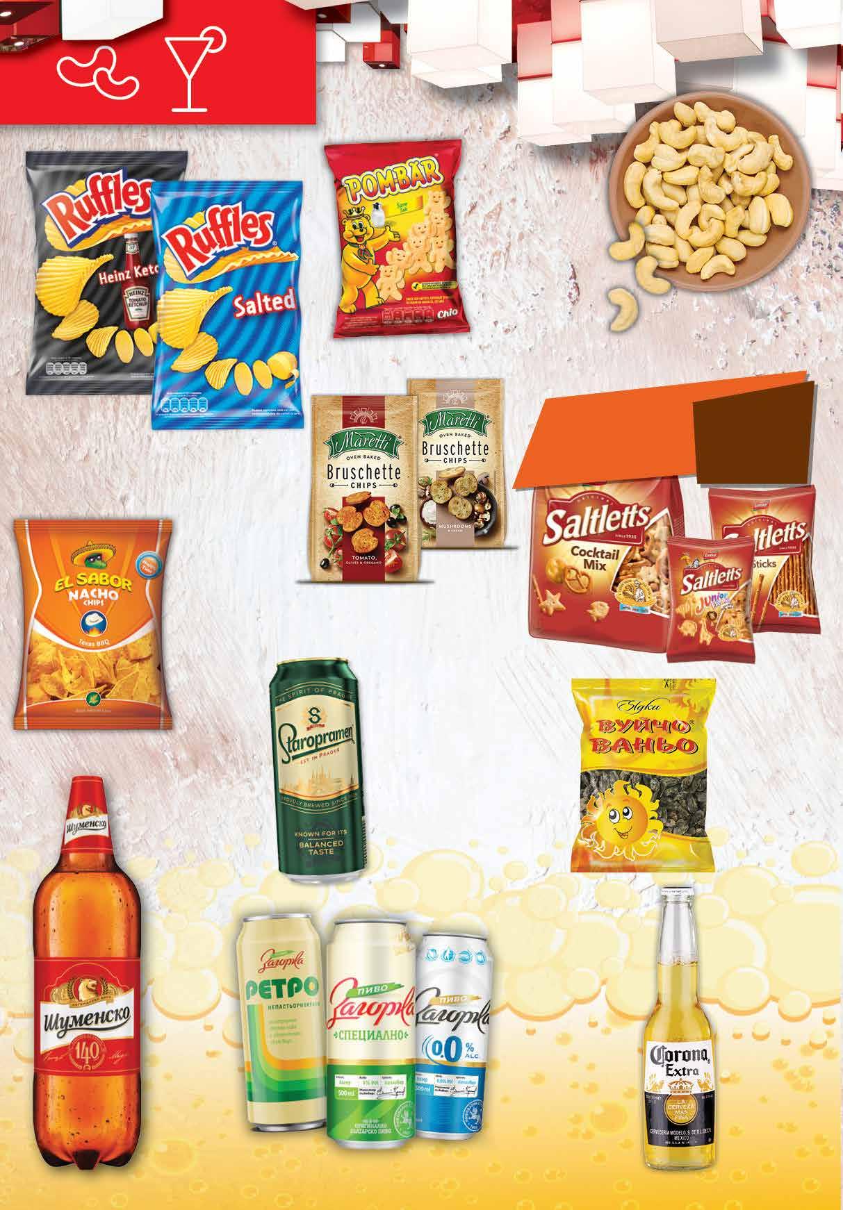 2.99 -33% 1 99 лв|бр 99 лв|кг 30.99 -22% 23 1.69 -35% 1 09 лв|бр 1.69 -35% 1 09 лв|бр ретро 2.19 -27% 1 59 лв|бр 2.09 -28% 1 49 лв|бр 4.29 -39% 2 59 лв|бр 1.99 -20% 1 59 лв|бр 2.65 -43% 1 49 лв|бр 1.45 -31% 0 99 лв|бр 3.19 -28% 2 29 лв|бр Бира STAROPRAMEN светло КЕН, 500 мл Бира ШУМЕНСКО PET, 2 л Бира ЗАГОРКА специално; Ретро; безалкохолна кен, 500 мл Бира CORONA Екстра 355 мл Всички продукти с марка LORENZ Saltletts с *предложението е валидно за магазините със сини цени отстъпка -25% Сурово кашу насипно Брускети MARETTI различни вкусове 70 г Царевичен чипс EL SABOR различни вкусове 100 г Чипс RUFFLES различни вкусове 155 г Слънчоглед ВУЙЧО ВАНЬО печен 130 г Снакс POM-BAR различни вкусове 50 г 16 Продуктите се продават в количества, обичайни за едно домакинство. Декорацията към продуктите не е включена в тяхната цена. ТВ „Фантастико“ си запазва правото на промяна в цените.
