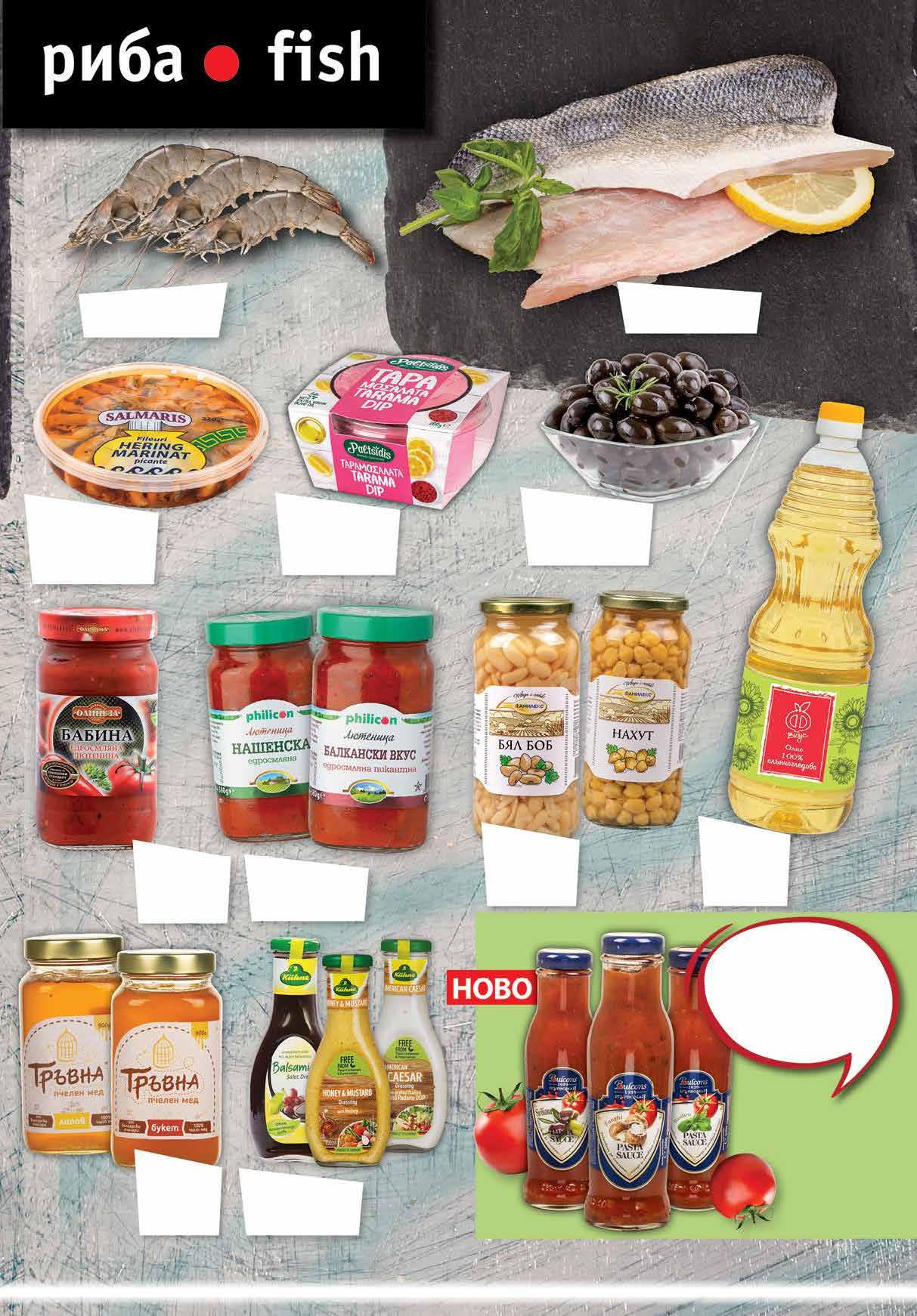 супер мамут насипни от щандова витрина Маринована херинга филе SALMARIS С лимон; Пикантна 220 г Разбит хайвер PALTSIDIS тарама розова 200 г Продуктите се предлагат в следните филиали: Ф6 район Студентски, бул. Г.М. Димитров №77; Ф7 жк Овча купел 1, ул. Монтевидео №98; Ф11 жк Хаджи Димитър, ул. Васил Кънчев/ул. Баба Вида №29; Ф14 гр. Ботевград, ул. Витоша 1А; Ф16 жк Люлин 6, бул. Джавахарлал Неру №26А; Ф17 жк Надежда 3, бул. Хан Кубрат №26, до бл. 301; Ф18 жк Стрелбище, ул. Нишава №138; Ф19 кв Бояна, бул. Ал. Пушкин №64; Ф21 жк Младост 4, ул. Д-р Атанас Москов №15; Ф22 Студентски град, ул. Акад. Борис Стефанов №22; Ф28 жк Гео Милев, ул. Коста Лулчев №52, в сградата на Sky City Mall; Ф30 кв Драгалевци, бул. Черни връх №204; Ф33 бул. Симеоновско шосе 87А; Ф34 жк Хаджи Димитър, ул. Макгахан №81; Ф36 жк Дървеница, бул. Св. Климент Охридски №15; Ф38 жк Овча купел, ул. Любляна №42А; Ф39 жк Разсадника – Коньовица, ул. Хъшове №4; Ф40 жк Гео Милев, ул. Николай Коперник №27; Ф41 гр. Елин Пелин, ул. Витоша №7; Ф42 жк Младост 1, бул. Йерусалим №22; Ф43 кв. Манастирски ливади, ул. Пирин №51А Ф44 гр. Банкя, кв. Изгрев, ул. Стефан Стамболов №138; Ф45 гр. Перник, ж.к. Изток, ул. Юрий Гагарин №52. 15 ТВ „Фантастико” не носи отговорност за допуснати печатни грешки. Количествата са лимитирани! Предложенията са валидни до сряда 22.00ч. на 17.05.2023 г.
