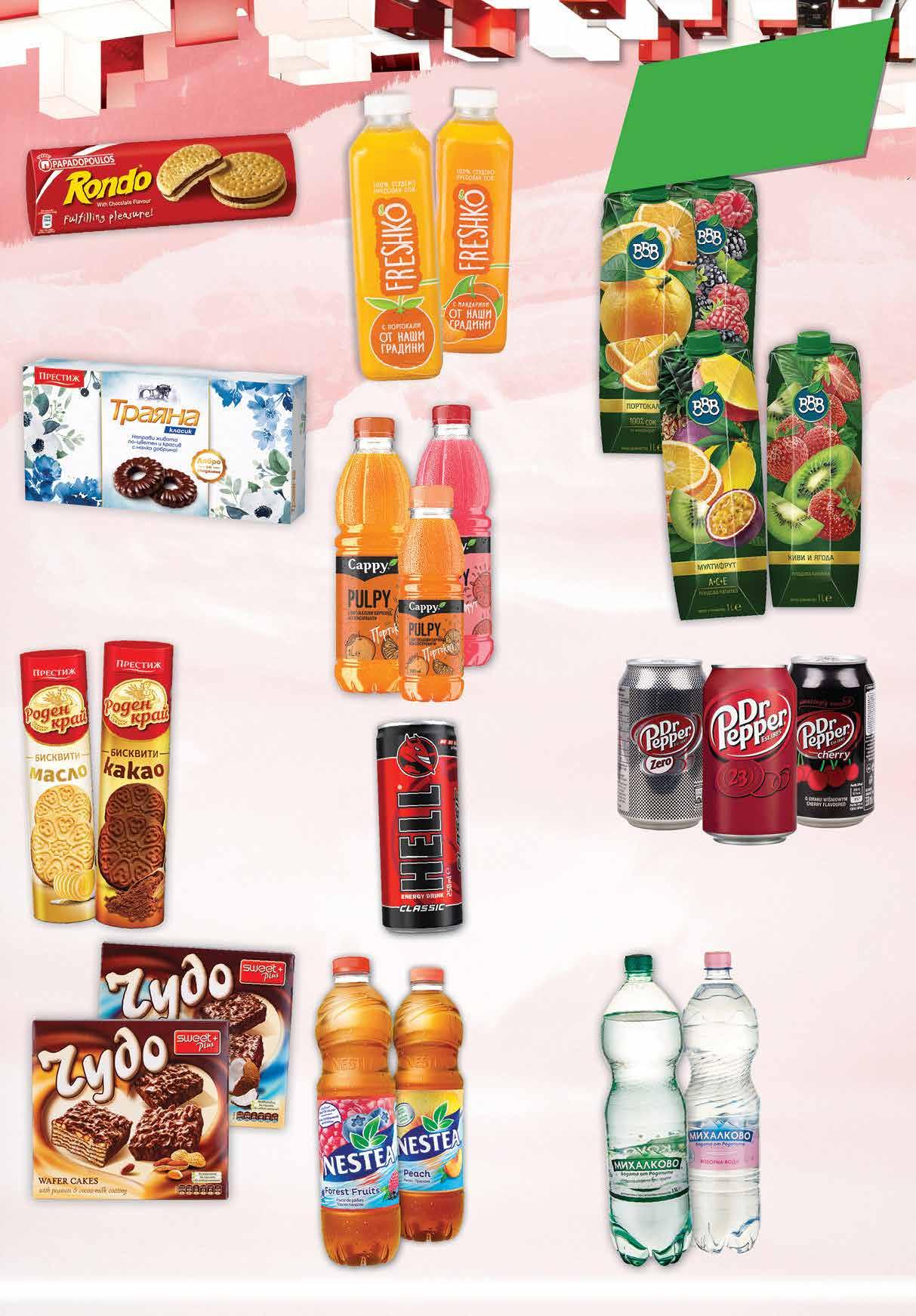 3.09 -32% 2 09 лв|бр 2.39 -33% 1 59 лв|бр 3.59 -27% 2 59 лв|бр 1.89 -21% 1 49 лв|бр 1.19 -25% 0 89 лв|бр изворна 1.49 -26% 1 09 лв|бр газирана 1.39 -28% 0 99 лв|бр 3.49 -31% 2 39 лв|бр 2.59 -23% 1 99 лв|бр 1 л 1.79 -22% 1 39 лв|бр 330 мл 4.99 -30% 3 49 лв|бр 3.59 -38% 2 19 лв|бр Тунквани бисквити ТРАЯНА различни видове 160 г Бисквити РОДЕН КРАЙ различни видове 165-170г Вафлена торта