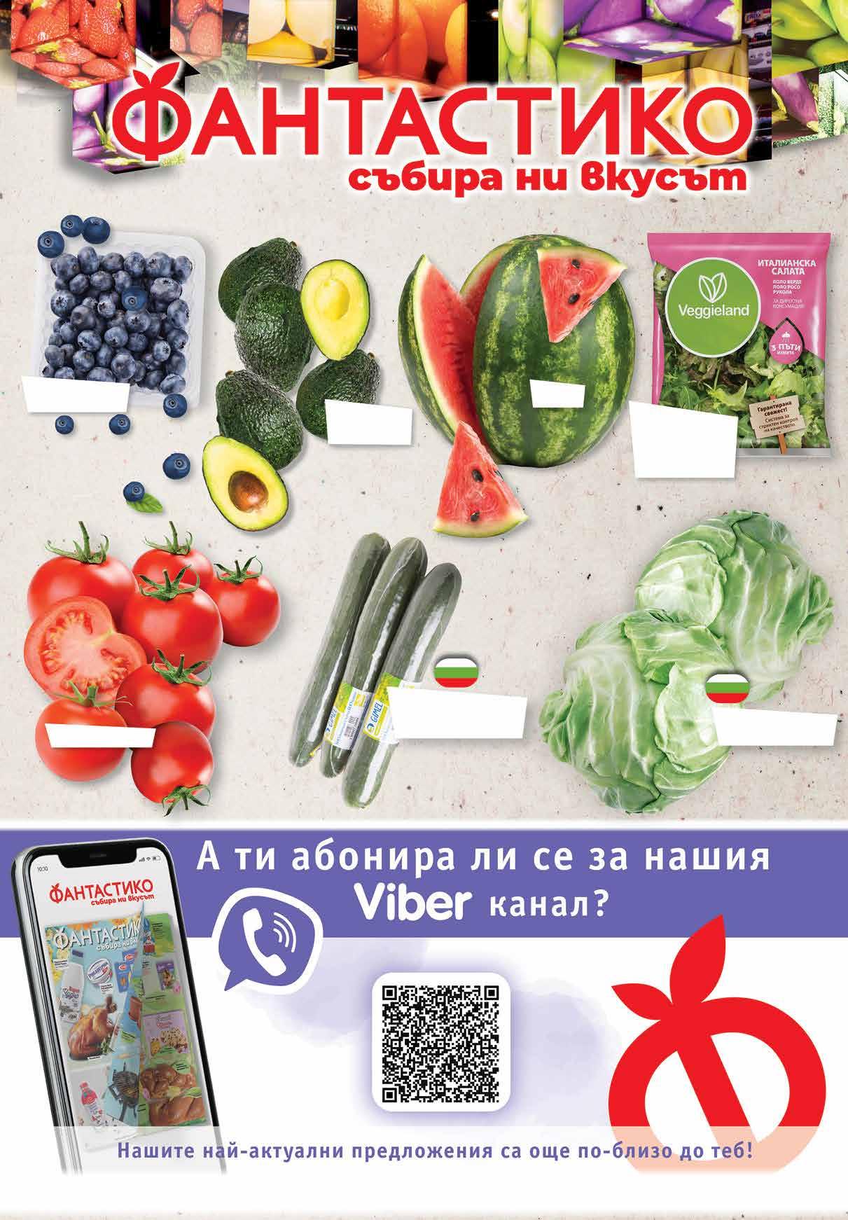 1 99 лв|оп. 1 99 лв|бр 2 99 лв|кг 1 29 лв|кг 1 39 лв|бр 1 99 лв|кг 4.49 -24% 3 39 лв|бр Боровинки 125 г в опаковка Зеле ранно произход България Био краставица ОРАНЖЕРИИ ГИМЕЛ произход България Червени домати Авокадо едро калибър 12 Диня Салата италианска VEGGIELAND 160 г Продуктите, обозначени с този символ, са с БЪЛГАРСКИ произход. Снимките са с илюстративна цел. ТВ „Фантастико” не носи отговорност за допуснати печатни грешки. Количествата са лимитирани! Предложенията са валидни до сряда 22.00 ч на 17.05.2023 г.