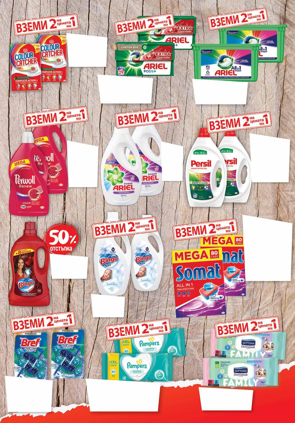 19.49 -56% 8 39 лв|бр HIDRO SYLK 10.99 -45% 5 99 лв|к-т 14.39 -35% 9 29 лв|к-т 13.99 -50% 6 99 лв|бр 99 лв|бр HIDRO 5 22.99 -52% 10 4 49 лв|бр 5 79 лв|бр 3.49 -25% 2 59 лв|стек 7 59 лв|бр 99 лв|бр 42.49 -27% 30 99 лв|оп. 49 1 99 лв|оп. кърпи 5.89 -37% 3 69 лв|ОП. 3.79 -23% 2 89 лв|бр крем Самобръсначка WILKINSON Hydro Sylk; Hydro 5 Шампоан SCHAUMA различни видове 750 мл Део спрей 150 мл; Део рол-он 50 мл; Део стик 40-50 мл REXONA различни видове Део спрей 150 мл maximum protection REXONA различни видове Душгел NIVEA различни видове 300 мл; 500 мл Комплект SENSODYNE Fluoride 75 мл + Whitening 75 мл Комплект