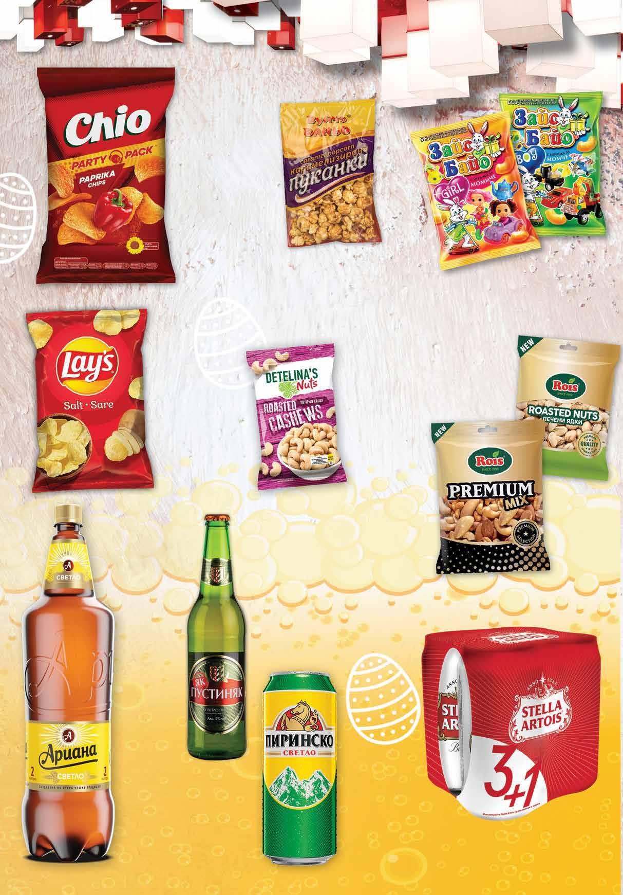 10.99 -27% 7 99 лв|бр 1.49 -20% 1 19 лв|бр 2.19 -22% 1 69 лв|бр 0.99 -20% 0 79 лв|бр 13.99 -30% 9 79 лв|бр 3.59 -30% 2 49 лв|бр 13.99 -32% 9 49 лв|бр 3.99 -37% 2 49 лв|бр 4.79 -20% 3 79 лв|бр 5.99 -23% 4 59 лв|бр Козунак капчица шоколад ЕЛИАЗ 450 г Шоколад KINDER 300 г *количествата са ограничени Великденски шоколадов микс MILKA 202 г *количествата са ограничени Шоколадово яйце MILKA 50
