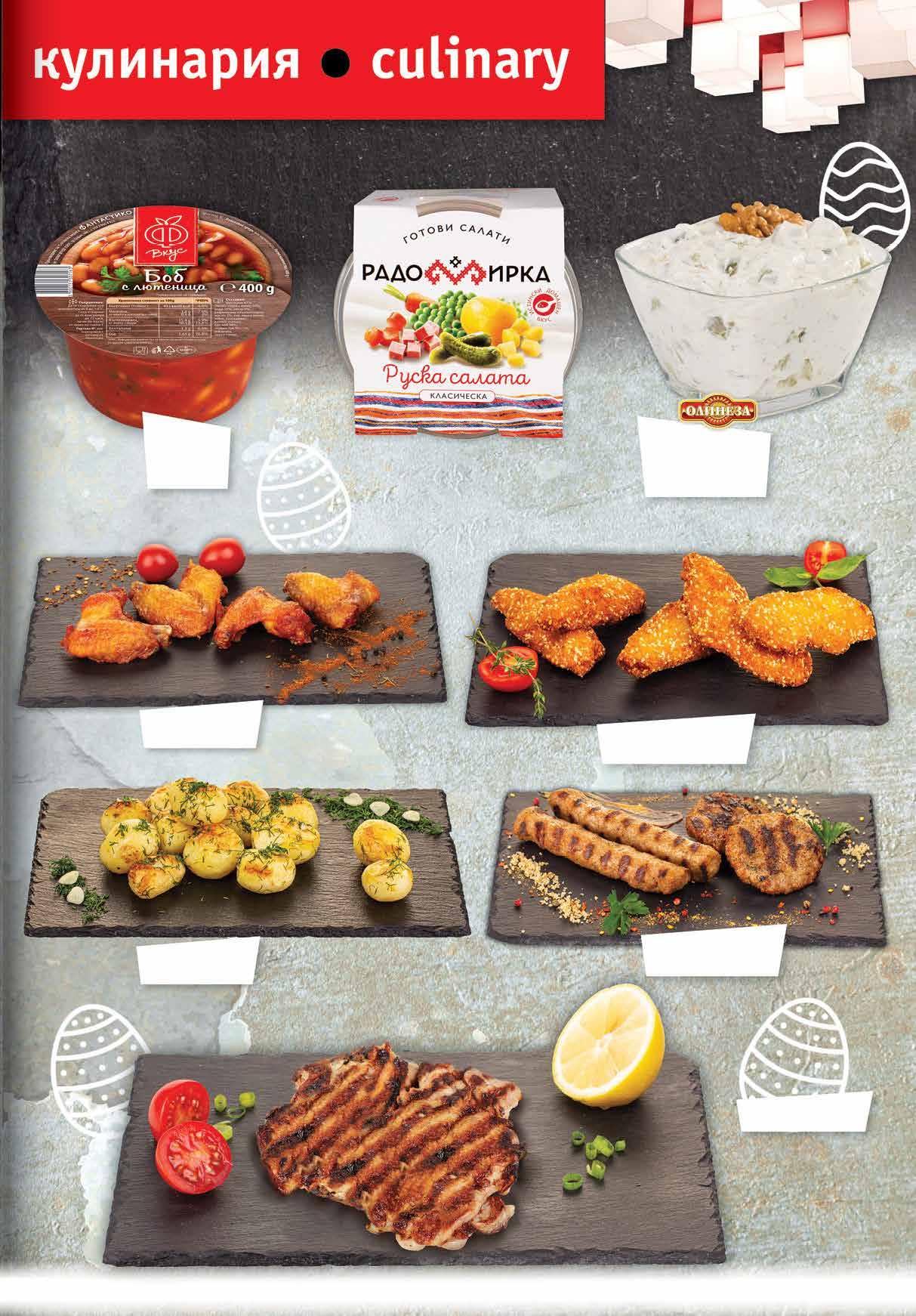 МЕС Суджук Добруджански; Телешки ОРЕХИТЕ вакуум, 160 г Салам Добруджанска закуска слайс вакуум, 180+20 г Филе Елена; Луканка Смядовска слайс, вакуум 150 г Пуешки деликатес слайс, вакуум, 100 г Салам шпек Сух шпек; Бургас; Чардака вакуум, 230 г Луканка Добруджанска 180 г + 30 г; Чардака 210 г; Телешка 170 г ОРЕХИТЕ вакуум Пуешки деликатес слайс, вакуум, 180 г Пушен Бекон слайс, вакуум 100 г 8 Продуктите се продават в количества, обичайни за едно домакинство. Декорацията към продуктите не е включена в тяхната цена. ТВ „Фантастико“ си запазва правото на промяна в цените.