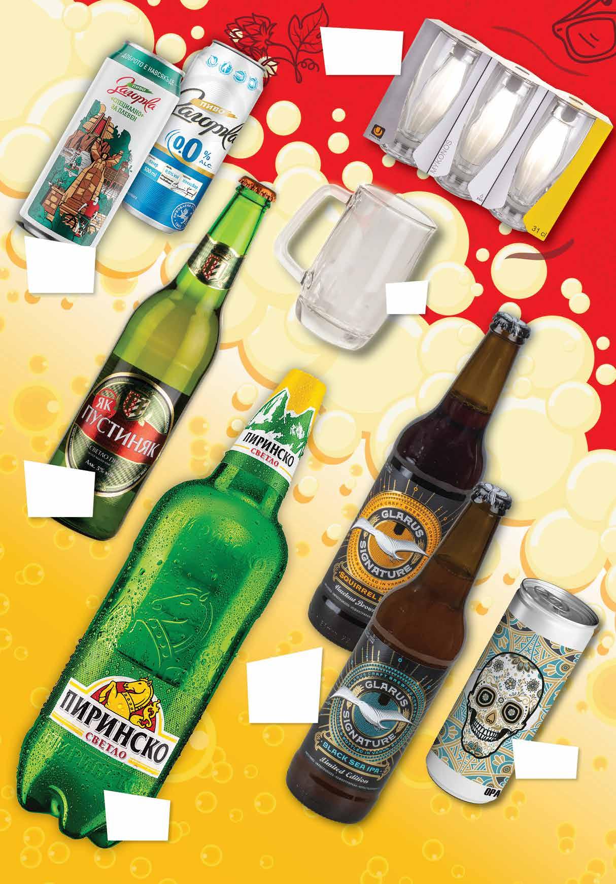 4.79 -22% 3 69 лв|бр 2.49 -28% 1 79 лв|бр 2.39 -25% 1 79 лв|бр 1.99 -20% 1 59 лв|бр 3.49 -22% 2 69 лв|бр Бира BERNARD Swing Celebration; Amber произход Чехия бутилка 500 мл Бира KROMBACHER Weizen произход Германия бутилка 500 мл Бира HOP RIDER Session Ipa; Wheat Pale Ale произход Германия кен 330 мл Бира STAROPRAMEN светло, PET, 1 л Бира KRUSOVICE Imperial произход Чехия кен, 500 мл 3 ТВ „Фантастико” не носи отговорност за допуснати печатни грешки. Количествата са лимитирани! Предложенията са валидни до сряда 22.00ч. на 16.08.2023 г.