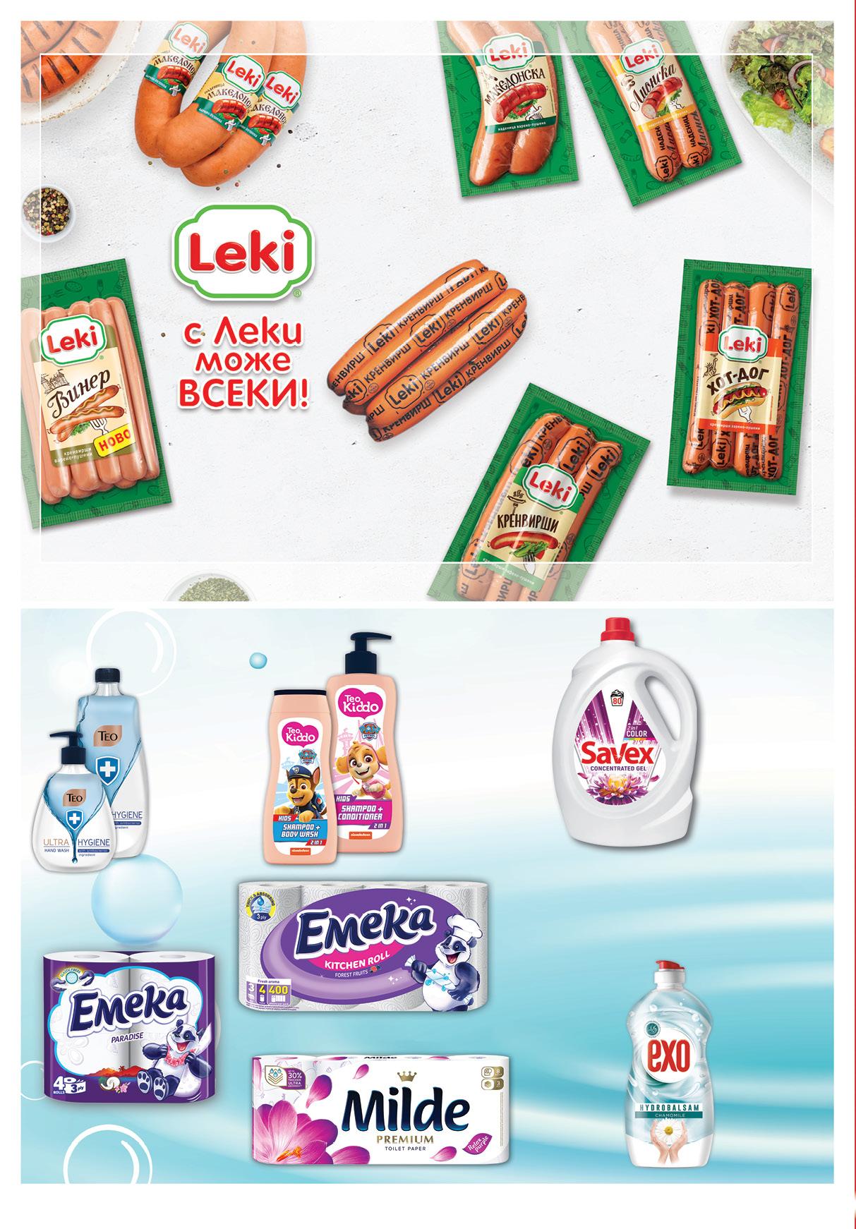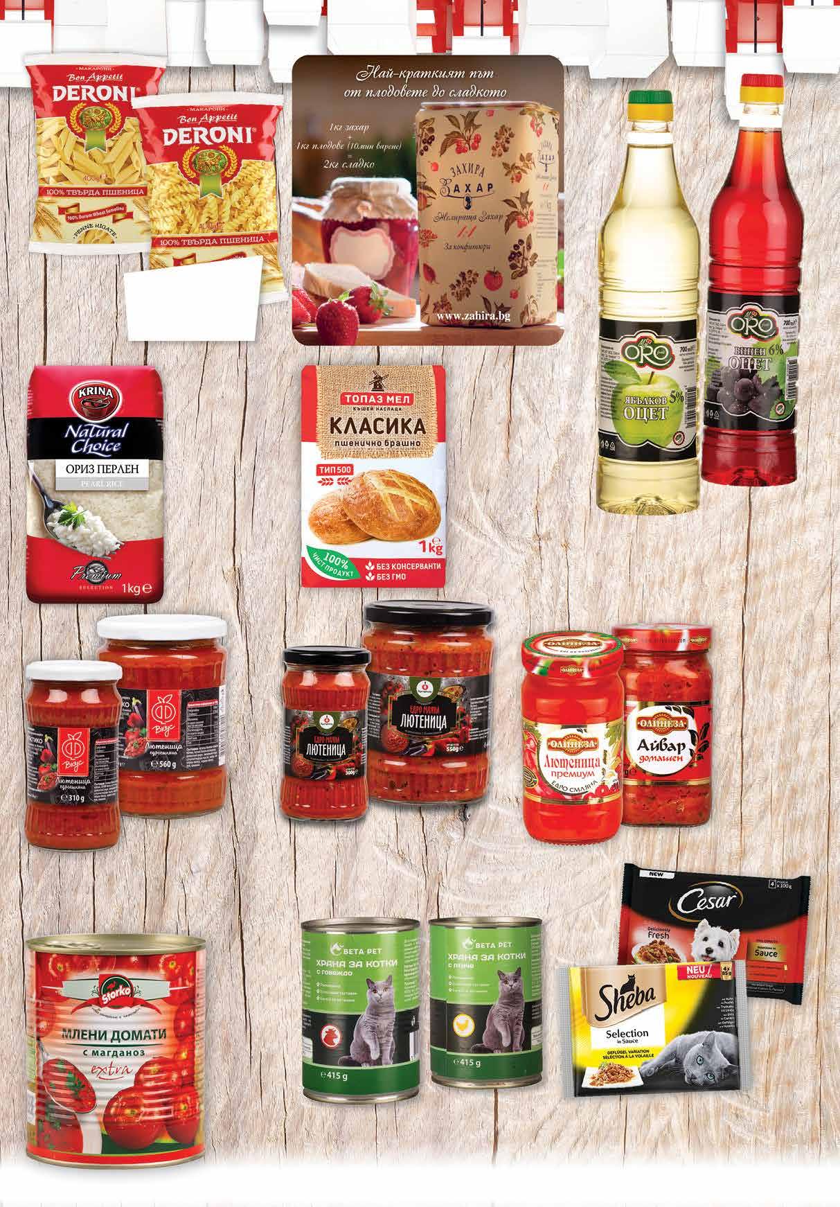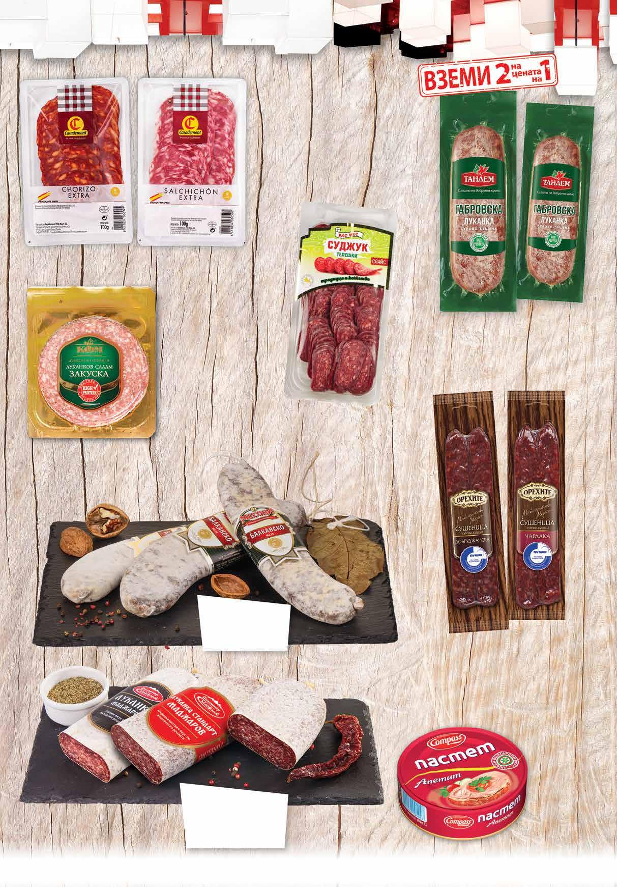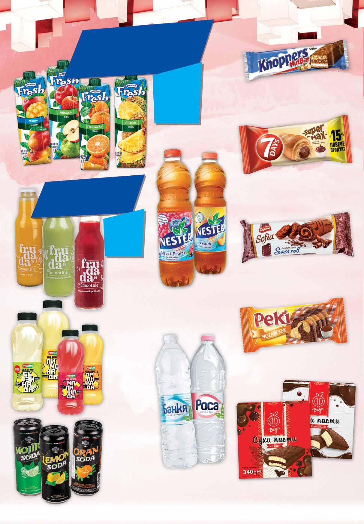 3.49 -42% 1 99 лв|бр 1.09 -22% 0 85 лв|бр 1.79 -27% 1 29 лв|бр 2.39 -33% 1 59 лв|бр 3.79 -29% 2 69 лв|бр 2.79 -35% 1 79 лв|бр 1,2 л 1.69 -35% 1 09 лв|бр 500 мл 3.29 -24% 2 49 лв|бр 1.99 -20% 1 59 лв|бр 1.75 -37% 1 09 лв|бр Кекс PEKI различни видове 200 г Негазирана напитка PRISUN различни видове PET 500 мл; 1,2 л Сухи пасти Ф ВКУС различни видове 340 г Десерт KNOPPERS NutBar 40 г Кроасан 7DAYS Super Max различни видове 127 г Руло DOMA