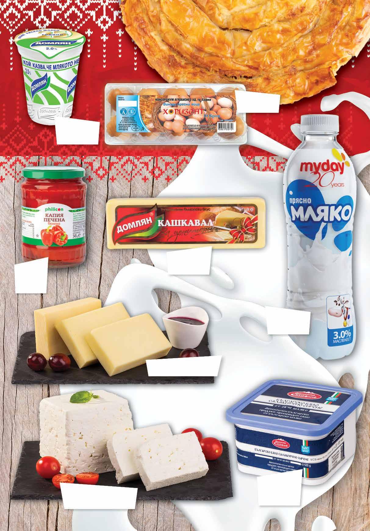 99 лв|бр 17.99 -22% 13 5.99 -25% 4 49 лв|бр 99 лв|бр 17.79 -21% 13 4.99 -16% 4 19 лв|oп. 49 лв|кг 16.49 -30% 11 3.79 -26% 2 79 лв|бр 99 лв|кг 22.99 -26% 16 1.69 -20% 1 35 лв|бр Капия печена белена PHILICON 545 г Прясно мляко MY DAY масленост 3% 1 л Сирене от овче мляко МАДЖАРОВ по БДС кутия, 500 г Сирене от краве мляко СИТОВО насипно от щандова витрина Кашкавал от краве мляко ДОМЛЯН вакуум 600 г Кашкавал от краве мляко РАЛЕР от голяма пита Яйца ХОРИЗОНТ размер L 10 бр в опаковка За баницатвоята Кисело мляко ДОМЛЯН масленост 2% 500 г 3 ТВ „Фантастико” не носи отговорност за допуснати печатни грешки. Количествата са лимитирани! Предложенията са валидни до сряда 22.00ч. на 08.03.2023 г.