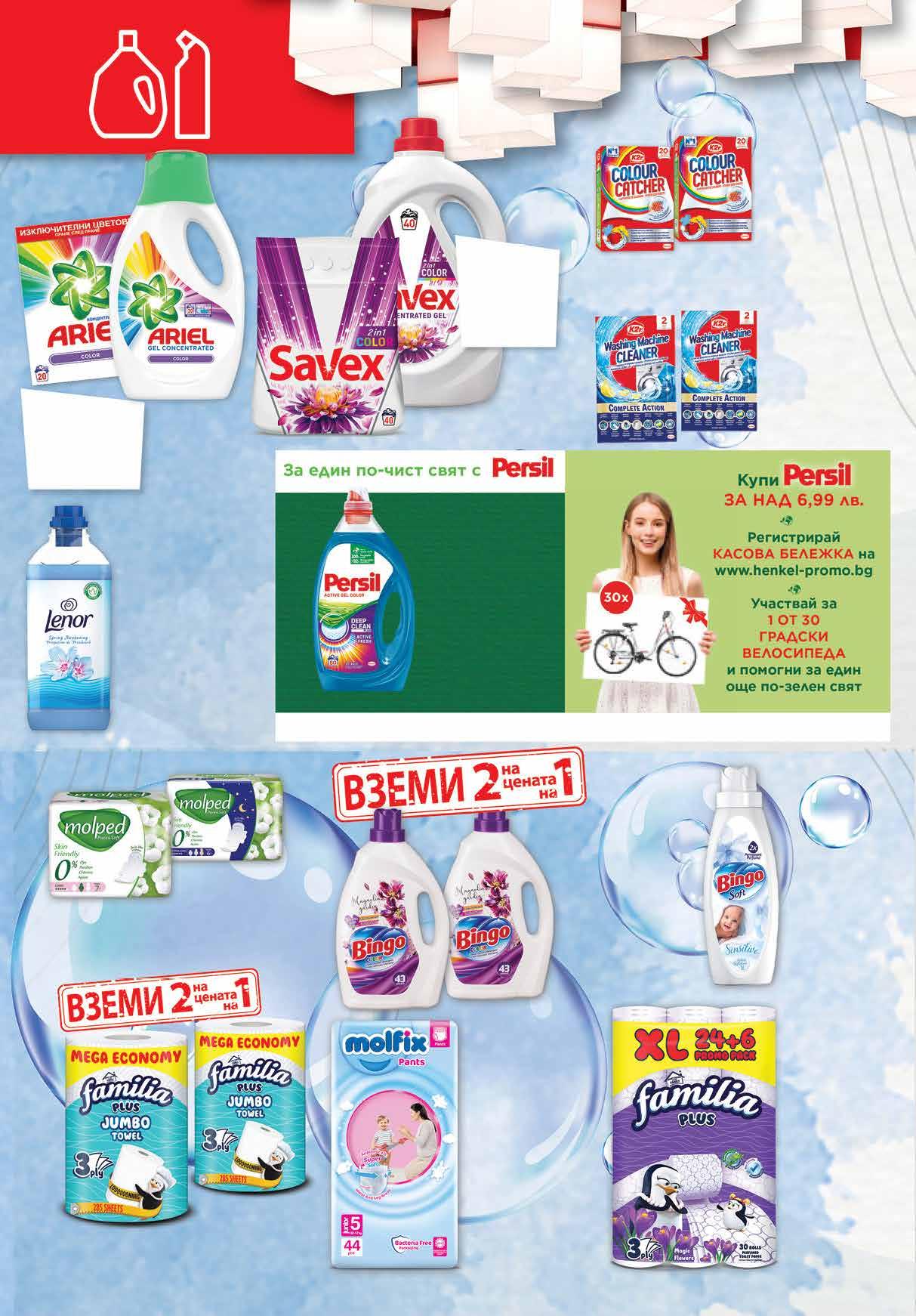 99 лв|бр 26.75 -36% 16 99 лв|бр 18.99 -26% 13 98 лв|2бр 31.96 -50% 15 49 лв|бр 16.99 -38% 10 9.59 -42% 5 49 лв|бр 13.96 -50% 6 98 лв|2бр 13.96 -50% 6 98 лв|2бр 3.35 -25% 2 49 лв|бр 9.96 -50% 4 98 лв|2бр 99* лв|бр 29.99 -36% 18 4.59 -41% 2 69 лв|бр 15.99 -40% 9 49 лв|бр ОмекотителLENOR различни видове 1.7 л Гел 3 л; Капсули 33, 40 бр за пране PERSIL различни видове Гел 2,2 л; Прах 4 кг; Капсули 28 бр за SAVEXпране видоверазлични COLOURцветнокърпиЦветоулавящизапранеCATCHER 2 опаковки х 20 бр Препарат напочистванезапералняK2R 2 опаковки х 2 бр Тоалетна хартия FAMILIA Magic Flowers; 24+6трипластоваWhiteбрпакет Гел 0,8 л; 0,9 л; 1,1 л; Прах 1,3 кг; Капсули 12-15 бр за пране ARIEL различни видове Бебешки гащички JumboMOLFIXPack различни размери 38 бр, 44 бр, 52 бр, 60 бр в опаковка Дамски MOLPEDпревръзкиPure&soft Long 7 бр; Night 6 бр; Normal 8 бр Кухненско руло FAMILIA JUMBO трипластова, 1 бр BINGOОмекотител различни видове 1 л Гел цветноза пране BINGO 2магнолиябрх2,6л Организатор на кампанията и администратор на личните данни е Хенкел България ЕООД. Срок на кампанията 01.07.2022 -31.08.2022. В кампанията участват всички продукти с марка Persil. За повече информация и общи условия посетете www.henkel-promo.bg. Снимката на наградата е илюстративна. *цената е валидна за периода от 18.08. до 24.08.2022 г. 22 Продуктите се продават в количества, обичайни за едно домакинство. Декорацията към продуктите не е включена в тяхната цена. ТВ „Фантастико“ си запазва правото на промяна в цените.