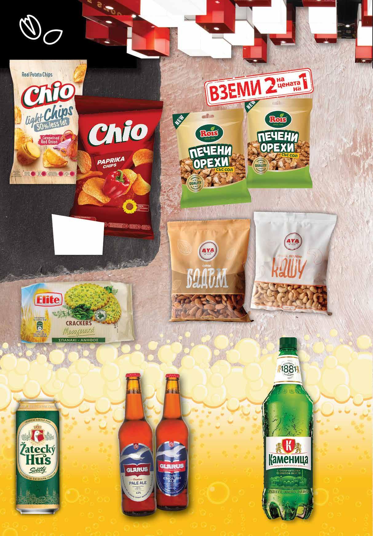 79 лв|брКАШУ 19.99 -26% 14 3.49 -37% 2 19 лв|бр 3.49 -37% 2 19 лв|бр light 8.76 -50% 4 38 лв|2бр 1.99 -32% 1 35 лв|бр 99 бадемлв|бР 17.69 -32% 11 2.79 -32% 1 89 лв|бр 1.65 -30% 1 15 лв|бр 2.49 -20% 1 99 лв|бр pale ale 2.49 -20% 1 99 лв|бр eng. ale КАМЕНИЦАБира PET, 2 л HUSZATECKYБира кен,светло500 мл Бира GLARUS Pale бутилка,Englishale;ale500 мл Чипс CHIO вкусоверазлични140 г; Чипс CHIO Light различни вкусове 125 г АЯбадемСуровкашу;Печено 500 г Печени орехи със ROISсол 2 бр х 120 г ELITEКрекери различни видове 105 г 16 Продуктите се продават в количества, обичайни за едно домакинство. Декорацията към продуктите не е включена в тяхната цена. ТВ „Фантастико“ си запазва правото на промяна в цените.