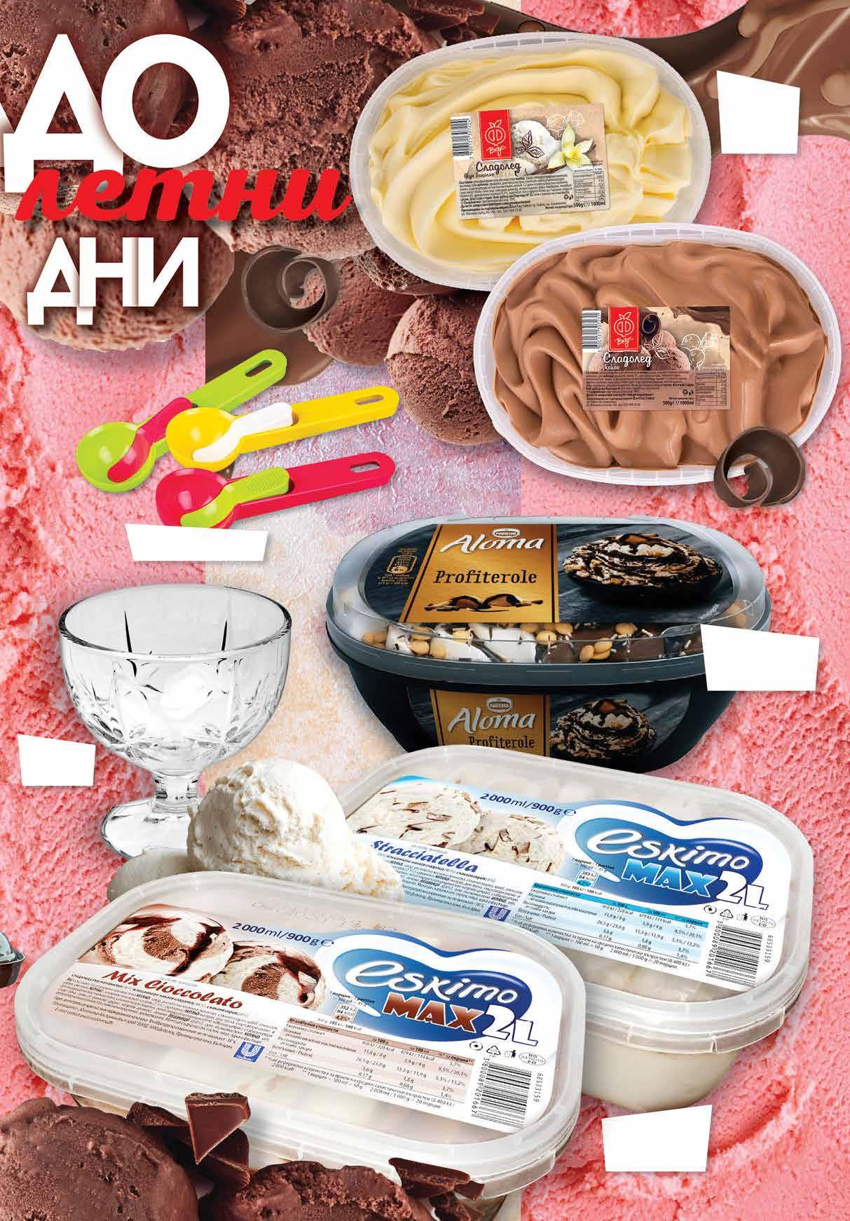 9.29 -37% 5 79 лв|бр 9.49 -30% 6 59 лв|бр 2.99 -33% 1 99 лв|бр 3.99 -25% 2 99 лв|бр 3.19 -40% 1 89 лв|бр NESTLEСладоледAloma различни видове 485 - 515 г заЧашамелба 30 см ЕСКИМОСладоледMax различни900видовег/2л ФСладоледВКУС 500видоверазличниг Лъжица за сладолед 19 см 3ТВ „Фантастико” не носи отговорност за допуснати печатни грешки. Количествата са лимитирани! Промоцията е валидна до сряда 22.00ч. на 24.08.2022 г.