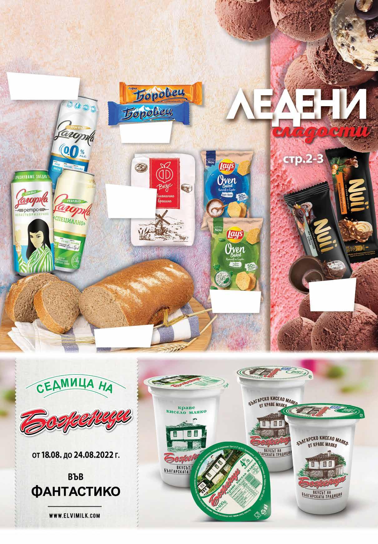 1.39 -35% 0 89 лв|бр 1.07 -20% 0 85 лв|бр 1.39 -35% 0 89 лв|брретро 3.59 -50% 1 79 лв|бр 2.65 -49% 1 35 лв|бр 0.55 -29% 0 39 лв|бр 3.89 -35% 2 49 лв|бр Бира ЗАГОРКА специално; безалкохолнаретро;кен, 500 мл Бяло брашно*пшеничноFВКУС 1 до*ограничениекг10брзаклиент ръжено-пшениченХляб 800 г СладоледNUII различни видове64-68гПечен чипс LAY`S различни вкусове 125 г Вафлa БОРОВЕЦ различни видове52-55г fantastico.stores ОФЕРТА ЗА ПЕРИОДА от 18.08.2022 г. до 22.00 ч . на 24.08.2022 г. www.fantastico.bg