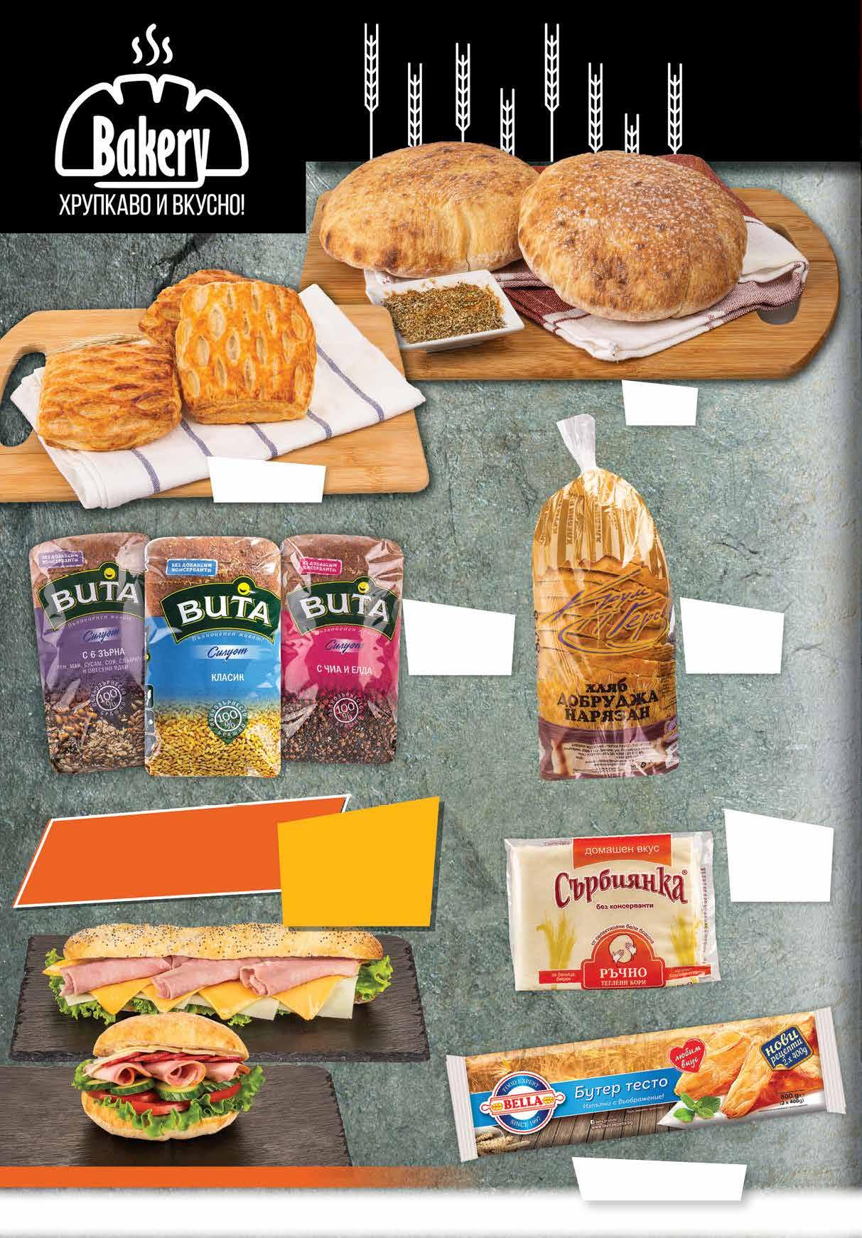 0.89 -33% 0 59 лв|бр 1.65 -22% 1 29 лв|бр 1.59 -27% 1 15 лв|бр 2.49 -20% 1 99 лв|бр 3.59 -25% 2 69 лв|бр 7.29 -35% 4 69 лв|бр КРУМДобруджаХлябГЕРОВ 830нарязан,г ХлябВИТА класик; с 6 зърна; с чиa и елда 400 г Пърленка 160 г Форнети XXL с топено сирене 115 г Вземи сандвич с прошуто кото с отстъпка -20% Бутер тесто BELLA замразено, 800 г *предложението е валидно за магазините със сини цени Кори за баница ръчно СЪРБИЯНКАтеглени домашен вкус 400 г 10 Продуктите се продават в количества, обичайни за едно домакинство. Декорацията към продуктите не е включена в тяхната цена. ТВ „Фантастико“ си запазва правото на промяна в цените.