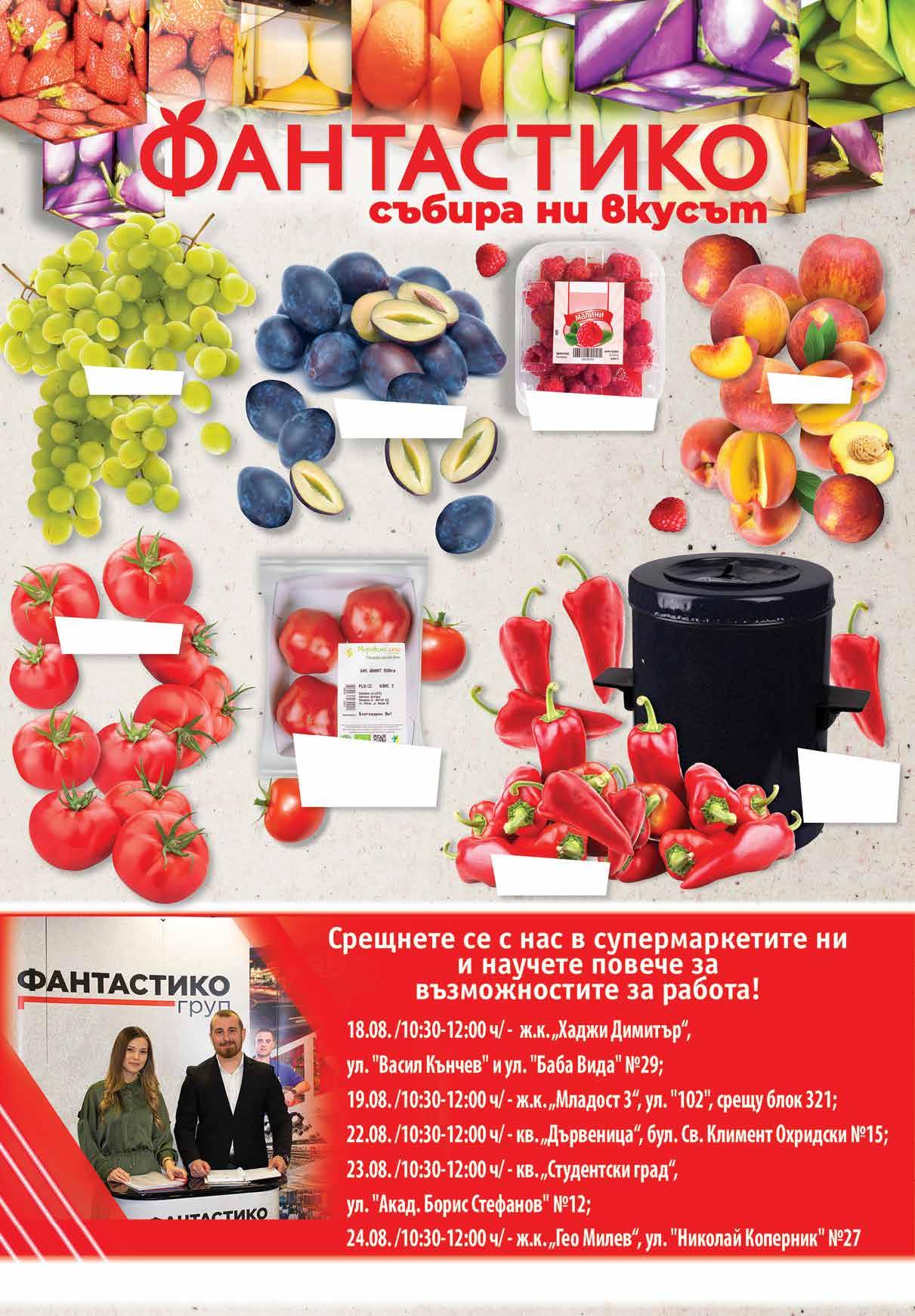 99 лв|бр392.59 -23% 1 99 лв|кг 2.69 -26% 1 99 лв|кг 3.59 -36% 2 29 лв|кг 2.89 -34% 1 89 лв|бр 3.79 -29% 2 69 лв|кг 1.49 -20% 1 19 лв|кг 2.99 -36% 1 89 лв|бр чушкопекТроен 1600W Бяло грозде Малини 125 г произход България Нектарини Чушкичервенакапия Сини сливи произход България Био домати ФЕРМА МОРАВСКО СЕЛО произход България 500 г в опаковка Розови домати произход България Снимките са с илюстративна цел. ТВ „Фантастико” не носи отговорност за допуснати печатни грешки. Количествата са лимитирани! Промоцията е валидна до сряда 22.00 ч на 24.08.2022 г. Продуктите, обозначени с този символ, са с БЪЛГАРСКИ произход.