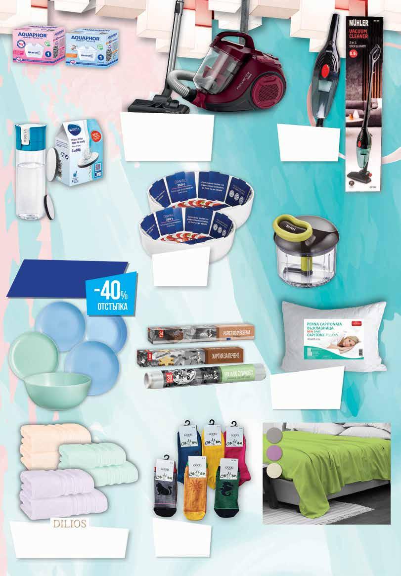 99 лв|бр Ø26 см 10 99 лв|бр Ø30 см 11 9 99 лв|бр Ø22 см 1 79 лв|бр 39 лв|бр 150/240 15.59 -20% 12 79 лв|бр 220/240 20.99 -20% 16 99 лв|бр 149 199.99 -25% 99 лв|бр 49 99 лв|бр 54.99 -41% 31 14.99 -50% 7 49 лв|бр 18.99 -50% 9 49 лв|бр 2.19 -27% 1 59 лв|бр фолио 3.75 -26% 2 75 лв|бр 8 м 12.99 -30% 8 99 лв|бр 24 м 2 75 лв|бр 30/50 7 99 лв|бр 50/90 99 лв|бР бутилка 49.99 -34% 32 99 лв|оп. дискове 35.99 -30% 24 Чорапи тип терлик GOOD; дамски № 35-41; мъжки № 39-46 1 чифт Хавлиена кърпа Пастел 30/50 см; 50/90 см 100% микропамук, 550 г/м2 различни цветове Чаршаф долен прав ранфорс 150/240 см; 220/240 см различни цветове *предложението е валидно за магазините със сини цени Прахосмукачка MUHLER MVS-605 стик 2in1 600W захранващ кабел 4 м Филтър AQUAPHOR Maxfor Plus; Maxfor Plus Mg; Maxfor Plus H 1 бр Ръчен чопър K1320404 SP05 900 мл