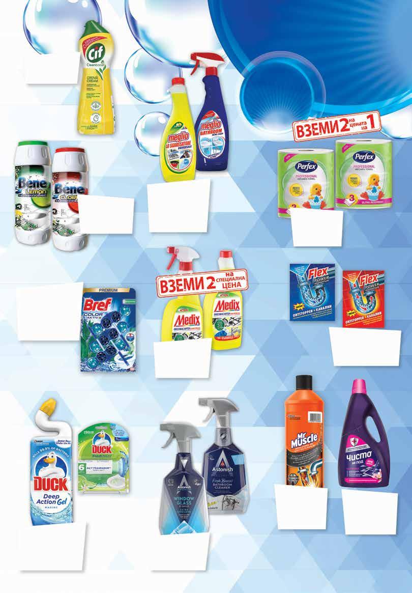 12.76 -50% 6 38 лв|2 оп. 4 59 лв|бр 11.55 -30% 7 99 лв|бр 6.59 -39% 3 99 лв|бр 1.19 -16% 0 99 лв|бр 5.25 -24% 3 99 лв|бр пълнител 4 99 лв|бр 10.84 -35% 6 99 лв|бр 5.69 -29% 3 99 лв|бр 750 мл 0 89 лв|бр 4 79 лв|бр 6 99 лв|к-т 5.39 -25% 3 99 лв|бр за баня 4.89 -18% 3 99 лв|бр за прозорци Почистващ препарат ASTONISH за баня; за прозорци 750 мл Препарат за под 960 мл; Гел за баня и тоалетна 700 мл ЧИСТО различни видове Кухненско руло PERFEX Professional трипластово 2 оп. х 1 бр Препарат CIF Cream различни видове 500 мл Препарат за отпушване