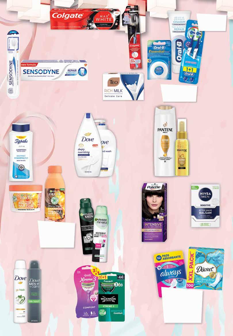 13.79 -32% 9 29 лв|оп. 11.65 -32% 7 89 лв|оп. discreet 7 99 лв|бр душ гел 6 29 лв|оп. 4 49 лв|бр сапун 8.69 -42% 4 99 лв|бр паста 4.39 -25% 3 29 лв|бр конец 50 м 5.89 -15% 4 99 лв|к-т четки 6.79 -48% 3 49 лв|бр 13.99 -32% 9 49 лв|бр 4 99 лв|бр 7 99 лв|бр 0 99 лв|бр 99 лв|бр МАСКА 11 10.99 -39% 6 69 лв|бр 6 99 лв|бр ПАСТА 5 49 лв|бр ЧЕТКА 99 лв|бр 10 99 лв|бр маска; олио 10 7 39 лв|бр 4 99 лв|бр Дамски превръзки ALWAYS Platinum Quattro 22-30 бр пакет; Ultra Quattro 24-40 бр пакет различни видове; DISCREET ежедневни 100 бр в опаковка