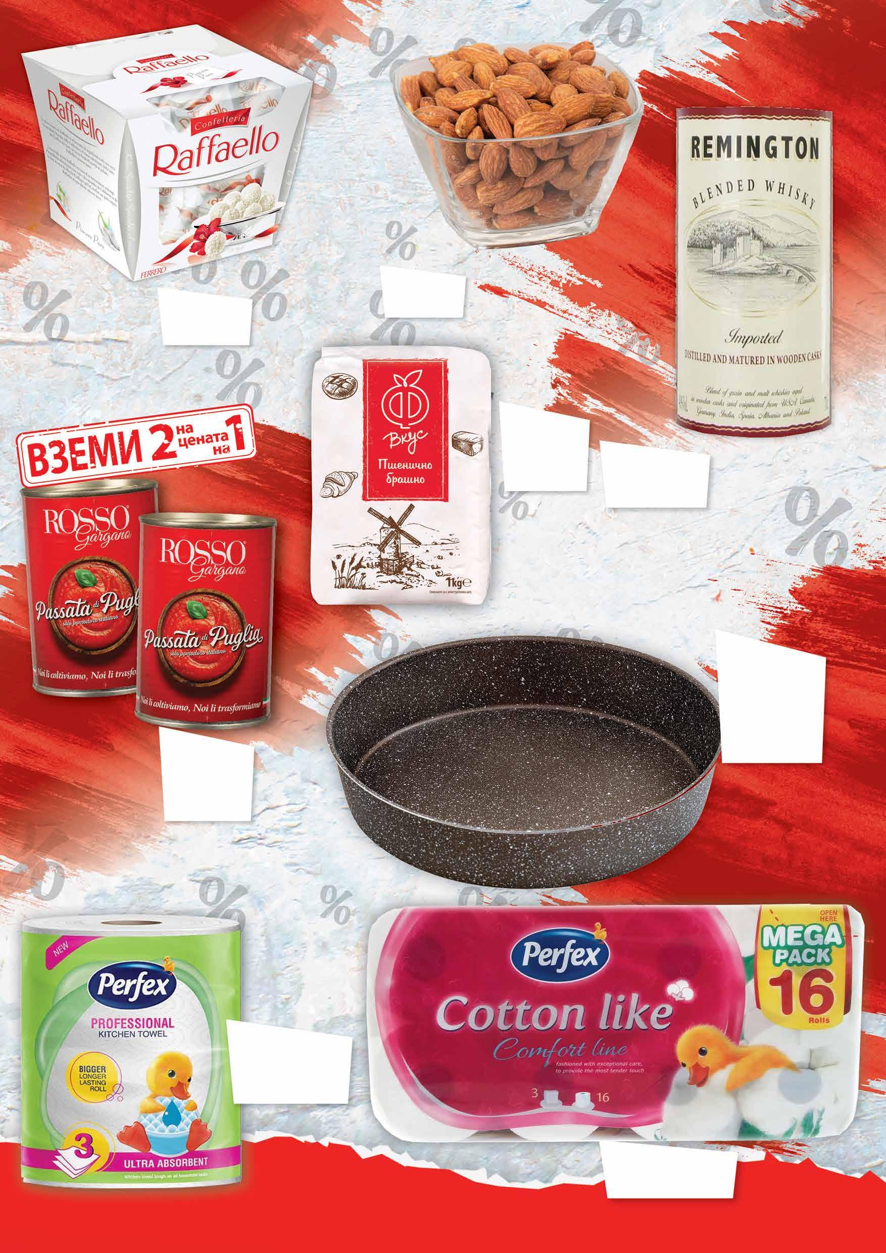 99 лв|бр 23.99 -54% 10 99 лв|бр 29.99 -60% 11 90 лв|кг 19 6.99 -28% 4 99 лв| бр 2 99 лв| бр 8 59 лв| оп. 5.56 -50% 2 78 лв| 2 бр 1.19 -20% 0 95 лв| бр Уиски REMINGTON 700 мл Печени бадеми насипни Тава BRIO Mocca Ø28 см • незалепващо покритие; • дебелина на дъното 2,5 мм. Бонбони RAFFAELLO 150 г Кухненско руло PERFEX Profesional трипластово 1 бр Тоалетна хартия PERFEX Cotton Like 16 бр в опаковка Бяло пшенично
